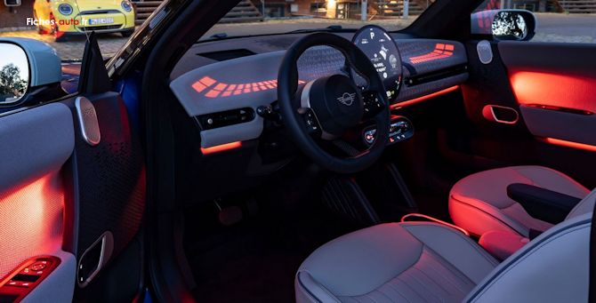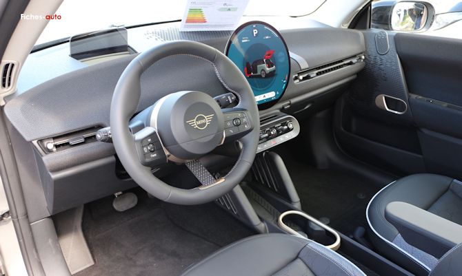 C'est probablement ici que la nouvelle Mini cherche le plus à marquer les esprits. La planche de bord a été totalement repensée et adopte un style très épuré, presque minimaliste, avec une ambiance qui mélange rétro et modernité. L'effet visuel est très réussi, surtout au premier contact. La présentation a du charme, elle se distingue vraiment de la masse, et l'on retrouve ce petit côté Mini que beaucoup viennent chercher avant tout : une auto qui a de la personnalité et qui évite de ressembler à un électroménager sur roues.
