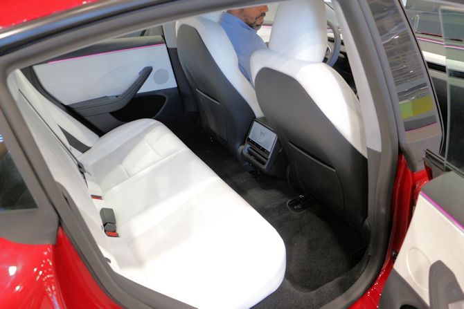 Au niveau de l'habitabilité ça reste très correct pour le gabarit de l'auto mais on garde le défaut notoire du plancher trop haut (ou de l'assise de banquette trop basse, deux manières de dire la même chose). On a donc les genoux très en l'air une fois assis dessus, ce qui peut induire des gènes sur long trajet car on ne peut pas non plus vraiment étendre les jambes (on ne peut pas glisser ses pieds sous le siège avant comme sur un Model Y).
