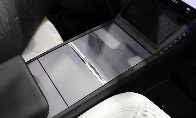 Les deux prises USB-C passent du rangement avant à l'accoudoir en gagnant de la puissance pour culminer à 65W (hélas les deux prises se transforment en une seule prise USB-C et elles ne peuvent plus communiquer avec l'interface, on ne peut donc plus y brancher des accessoires comme une manette de jeu par exemple). L'allume cigare (très peu tolérant aux ustensiles hors Tesla, pas génial) passe quant à lui dans le rangement avant. La souci est que la voiture tolère très peu les périphériques qu'on y branche, elle détecte que ce n'est pas du matériel Tesla et fait "sauter les plombs" pendant une certaine durée. Je ne peux par exemple pas utiliser un gonfleur de roue que j'avais acheté, il faut celui de Tesla (je me refuse toutefois à tomber dans ce chantage ...).