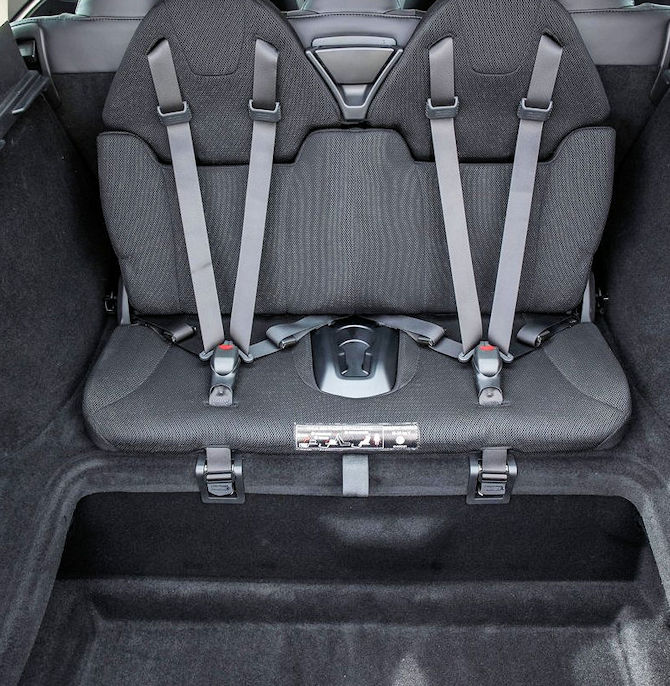 Concernant l'habitabilité au deuxième rang, on est à peu près sur le même idéal, à savoir de l'espace dans tous les sens (largeur de banquette, espace aux jambes) tout en bénéficiant d'un plancher totalement plat permettant un confort bien meilleu du passager central. Les sièges ne sont pas individuels ce qui peut un peu gêner certain au niveau esthétique (contrairement à un Model X qui propose des choses un peu plus jolies).