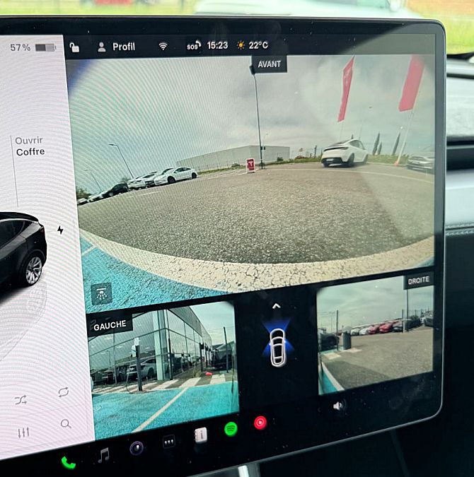 Une caméra avant est arrivée et permet enfin de se stationner sans craindre de toucher en ne se fiant qu'à Tesla Vision. Hélas, la caméra est tellement grand angle qu'elle en fait perdre ses repères en termes de distances ...