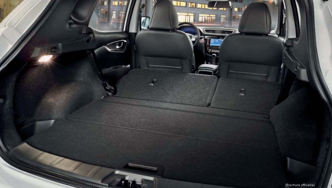 Niveau coffre, le Qashqai 2 gagne une poignée de litres pour atteindre aujourd'hui 430 litres. Si cela n'est pas des plus géants, force est de constater que ça reste suffisant pour faire beaucoup de choses. Une petite famille de trois personnes s'en contentera largement même si il faudra peut-être forcer un peu pour le fermer lors des départs en vacances ... Niveau habitabilité, on est sensiblement proche des berlines de moyenne taille type BMW Série 3. Les deux places arrière latérales sont très honnêtes tandis que la centrale se révèle presque aussi précaire que dans les berlines.