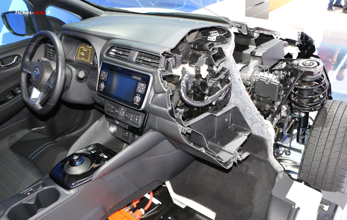 (Source Nissan Novembre 2020) A partir de 33 900 euros : ABS / EBD / ESP / Système "Chassis Control" // Système de contrôle de la pression des pneus (TPMS) // 6 Airbags frontaux, latéraux et rideaux // Régulateur et limiteur de vitesse // Freinage d'urgence intelligent avec reconnaissance des piétons // Système d'alerte anticollision intelligent // Alerte de franchissement de ligne // Prévention de franchissement de ligne intelligent // Reconnaissance des panneaux de signalisation // Surveillance des angles morts // Jantes acier 16" avec enjoliveurs // Poignées de porte chromées // Sellerie Tissu noir Visia // Modes de conduite "ECO" et "B" // Aide au démarrage en côte // Rétroviseurs extérieurs dégivrants // Accoudoir central // Climatisation automatique // Contrôle de la température à distance(1) // Vitres électriques à l'avant et à l'arrière // Allumage automatique des feux // Essuie-glaces avant à déclenchement automatique // Feux diurnes LED avec signature lumineuse // Technologie e-Pedal // Système audio CD, Bluetooth®, AM/FM, RDS, MP3, USB // 4 haut-parleurs // Combiné d'instrumentation avec écran HD TFT 7" couleur // Système d'ouverture et de démarrage sans clé "Intelligent Key" // NissanConnect Services Services télématiques avec accès à distance(1)Voir détails des services dans la liste des équipements // Pack 100% Mobilité // Câble de 6 m pour se recharger sur prise domestique // Câble 32A de 6 m pour se recharger sur borne publique ou Wallbox 7 kW T2 // Chargeur embarqué 6,6 kW pour se recharger sur borne ou Wallbox 32A // Connecteur pour chargeur rapide CHAdeMO* // Programmation de la recharge // Activation de la recharge à distance