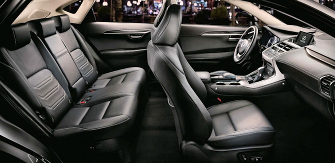 Si le design torturé de l'auto pourrait faire croire que le style a été privilégié à la praticité, il faut reconnaître que le NX se révèle finalement bien doté pour accueillir famille et bagages ... Tout d'abord, l'habitabilité aux places arrière se révèle sans faille en raison avant tout d'un espace aux jambes très généreux (les grands gabarits s'y trouveront à l'aise, ce qui n'est pas toujours le cas dans la catégorie). Bien évidemment, la largeur de la banquette et la forme des sièges est plus adaptée pour recevoir deux passagers que trois (le tunnel de transmission n'aide pas vraiment non plus même si il est moins proéminent sur la version Hybride : elle n'a pas d'arbre de transmission allant vers l'arrière), mais ces deux là seront vraiment très bien lotis.