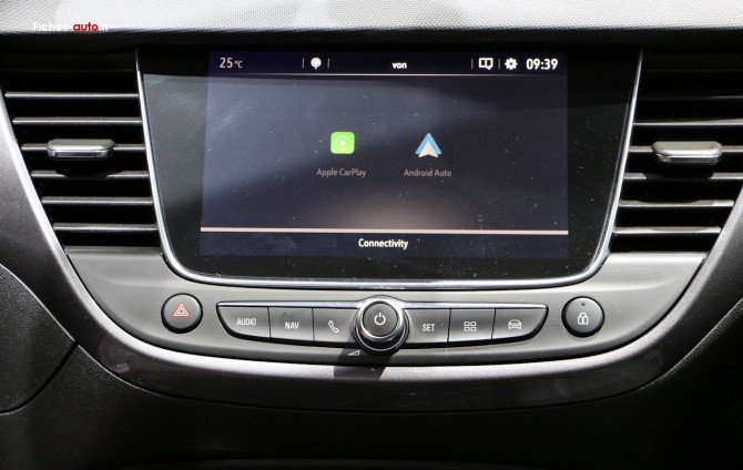 Source Opel Octobre 2018 / A partir de 17 750 euros : ESP Plus® avec : système antiblocage des roues (ABS) / Répartiteur électronique de freinage (EBD) / Aide au freinage d'urgence (HBA) / Contrôle de traction électronique (TCS+MSC) / Contrôle de stabilité en courbe (CSC) // Airbags frontaux, latéraux avant et rideaux // Allumage automatique des feux stop en cas de freinage d'urgence (5 fois par seconde) // Allumage automatique des feux de détresse en cas de déclenchement des Airbags ou des prétensionneurs // Ceintures de sécurité avant et latérales arrière avec prétensionneur et limiteur d'effort // Sièges arrière latéraux avec fixations ISOFIX // Alerte de non bouclage des ceintures de sécurité aux 5 places // Alerte de sous-gonflage des pneumatiques // Instrumentation de bord muni d'un écran 3.5'' monochrome blanc avec ordinateur de bord // Kit anti-crevaison // Direction à assistance électrique // Aide au démarrage en côte (HSA) // Allumage / extinction automatiques des phares // Alarme sonore d'oubli d'extinction des feux et extinction différée des phares "Porte-à-porte" // Caméra Opel Eye : alerte de changement de voie intempestif, reconnaissance des panneaux de signalisation couplée au régulateur / limiteur de vitesse // Verrou électronique Opel (antidémarrage) // R4.0 IntelliLink : système multimédia avec écran tactile 7'', 4x20W, 6 haut-parleurs, radio AM/FM, USB, Bluetooth mains libres, audio streaming, Apple CarPlay & Android Auto pour l'utilisation de certaines application du Smartphone // Apple CarPlay (iPhone 5/5C/6/6S/7/8 avec iOS 8 minimum, affichage des applications du smartphone dont Maps, téléphone, messages et musique), Android Auto (Smartphone avec 5.0 Android Lollipop minimum, affichage des applications du smartphone dont Maps, téléphone, messages et musique) // Climatisation manuelle // Vitres électriques avant et arrière // Verrouillage centralisé à télécommande // Siège conducteur réglable en hauteur // Volant cuir multifonction réglable en hauteur et profondeur // Sellerie tissu Peanut // Dossier de banquette arrière rabattable 60:40 // Cache-bagages rigide avec glissière de rangement au dos de la banquette arrière // Rétroviseurs extérieurs à réglages électriques et dégivrants // Poignées de portes et coques de rétroviseurs extérieurs peintes couleur carrosserie, barre de calandre chromée // Jantes en alliage 16" Twin Spoke // Feux de jour à LED