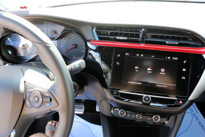 A partir de 17 400 euros : Climatisation manuelle // Palettes au volant (uniquement sur BVA) // Jantes alliage 16'' Silver 16'' avec enjoliveurs de roues sur Corsa-e // Phares avant ECO LED (uniquement sur BVA) // Spoiler arrière Sport (uniquement si BVA) // Frein à main électrique (uniquement si BVA) // Volant cuir multifonction 3 branches à méplat (uniquement sur BVA) // Ecran tactile couleur 7'' compatible Apple CarPlay et Android Auto // 6 haut-parleurs // 1 port USB // Corsa Electrique UNIQUEMENT : Climatisation automatique monozone, Pack visibilité (voir pages options), Démarrage sans clé, Module Opel Connect, Chargeur embarqué monophasé - 7,4 KW, Câble de recharge Mode 2 - 1,8 KW