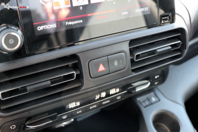 A partir de 25 000 euros : Frein de stationnement électrique // Pack visibilité * // Projecteurs antibrouillard // Sécurité enfant électrique // Aide au stationnement arrière // Jantes tôle noire 16'', enjoliveurs Gris Anthra TONGARIRO // Calandre chrome // Commandes d'ouverture extérieure de portes, coques de rétroviseurs extérieurs et enjoliveur de plaque de police arrière couleur caisse // Pare-chocs avant couleur caisse, sabots avant et arrière Gris Aluminé // Projecteurs avec feux diurnes avec DRL à LED et module elliptique // 4 Lèves-vitres électriques et impulsionnels // Air conditionné automatique bizone et arrière (en rang 2) // Console haute avec rangements, prise USB de recharge sous les aérateurs arrière (en rang 2) // Portes latérales coulissantes droite et gauche avec vitres descendantes, vitres fixes en rang 3, vitrages arrière teintés // Rétroviseurs extérieurs électriques chauffants et rabattables // Trappes de rangement dans le plancher arrière (en rang 2) // Siège conducteur réglable en longueur, hauteur et inclinaison, appui tête réglable en hauteur réglage lombaire manuel, accoudoir, rangement sous siège, tablette aviation et aumonière // Siège passager escamotable, appui tête réglable en hauteur, accoudoir amovible, tablette aviation et aumonière // Radio connectée, écran tactile capacitif 8'' couleur // 1 prise USB en façade, 1 prise USB dans la boite à gants supérieure, 1 prise jack, Bluetooth® // Mirror Screen (compatible Mirrorlink®, Apple CarPlay™, Androïd Auto®).
