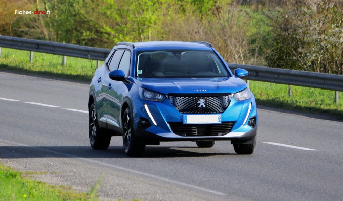 (Source Peugeot Avril 2020) De 21 500 à 37 100 euros : 6 Airbags (frontaux / latéraux / rideaux) // ESP + Détection de sous-gonflage indirecte // Allumage automatique des feux de croisement // Essuie-glace avant à déclenchement automatique // Fixations ISOFIX arrière latérales et Top Tether // Kit de dépannage pneumatiques // Projecteurs LED Technology // Pack Safety ( Freinage d'urgence automatique avec alerte risque de collision, alerte active de franchissement involontaire de ligne et bas côté, reconnaissance étendue des panneaux de signalisation et préconisation de vitesse, alerte attention conducteur par caméra) // Régulateur / Limiteur de vitesse // Aide graphique et sonore au stationnement arrière // Jantes tôle 16" avec enjoliveurs NOLITA (alliage sur Puretech 130 ch) // 2 Télécommandes 3 boutons // Air conditionné manuel // Lève-vitres avant et arrière électriques, séquentiels et antipincement // Peugeot i-Cockpit® avec combiné à matrice TFT couleur 3,5'' // Rétroviseurs extérieurs dégivrants à réglage électrique // Sellerie tri-matière tissu PNEUMA 3D // Siège conducteur avec réglage manuel en hauteur // Banquette rabattable 1/3 - 2/3 // Radio avec écran tactile capacitif 7" couleur // Bluetooth®, Mirror Screen // 6 hauts-parleurs (4 à l'avant, 2 à l'arrière) // 1 prise USB sur console avant // En supplément sur e-2008 : Pack Safety Plus (Pack Safety + freinage d'urgence automatique de jour et de nuit), Air conditionné automatique monozone, Console haute avec accoudoir intégré, Démarrage mains libres