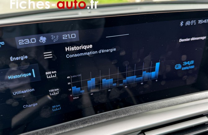 (Source Peugeot mai 2024) A partir de 38 490 euros : Projecteurs PEUGEOT LED Technology, feux diurnes 3 griffes à LED // Feux arrière 3 griffes à LED // PEUGEOT i-Cockpit® panoramique avec double écran HD flottant (2 x 10'') // PEUGEOT i-Connect® Radio DAB, Bluetooth® (connexion 2 téléphones), Mirror Screen sans fil (Apple CarPlay™ / Android Auto™) // VisioPark 1 : caméra de recul HD & aide au stationnement arrière, graphique et sonore // Accès et démarrage mains libres Proximity // Air conditionné automatique bi-zone // Plancher de coffre modulable 2 positions // Rétroviseurs extérieurs dégivrants à réglage et rabattement électriques, éclairage de seuil // Jantes alliage 19'' diamantées // Câble électrique mode 3 triphasé 22 kW (sur électrique) // Chargeur embarqué 11 kW triphasé (sur électrique)