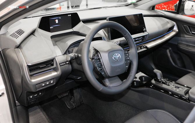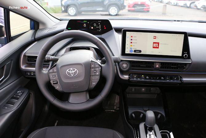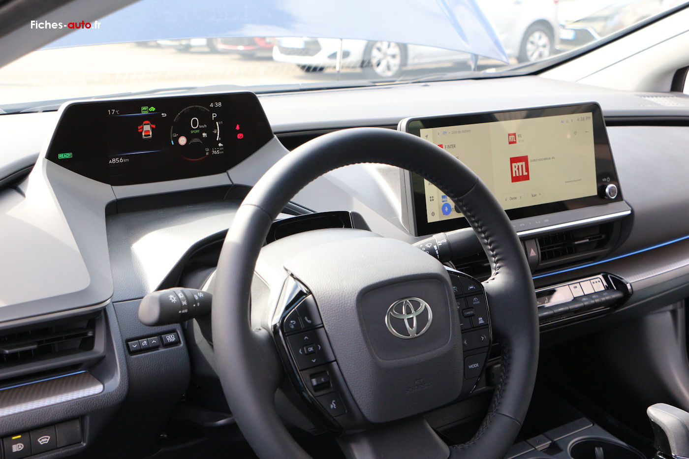 Loin d'être mauvais, l'habitacle de la Prius peut toutefois être trop disparate en termes de qualité perçue, avec des éléments qui impressionnent et d'autres qui déçoivent vraiment (pénalisant le sentiment général). Notons aussi qu'il est moins ambitieux et plus terne que l'ancien, qui avait cherché à mettre des surfaces plus égayantes (blanc etc.). L'ensemble fait sérieux mais il paraît un peu triste et monotone pour l'époque, car la concurrence fait désormais en sorte d'offrir des présentations plus travaillée et séduisantes. Et si le volant associé au compteur façon vaisseau spatial se remarque, le reste de l'habitacle vient un peu étouffer et modérer cet effet "wahou". Et si la qualité des plastiques sur le haut de la planche de bord est bonne, les autres sont plutôt quelconques. On note aussi de grosses fautes de goût comme les bitognos de fermeture des portes qui semble être les mêmes que ceux qu'on retrouvait déjà en 1990, c'est vraiment indigeste. Idem concernant les contre-portes (surtout arrière) et les tissus de sièges qui sont à la fois très basiques dans leur aspect et leurs découpes (seuls les sièges avant bénéficient de quelques efforts). Le noir laqué de la console centrale est aussi un aspect qui ne favorise pas la qualité perçue.