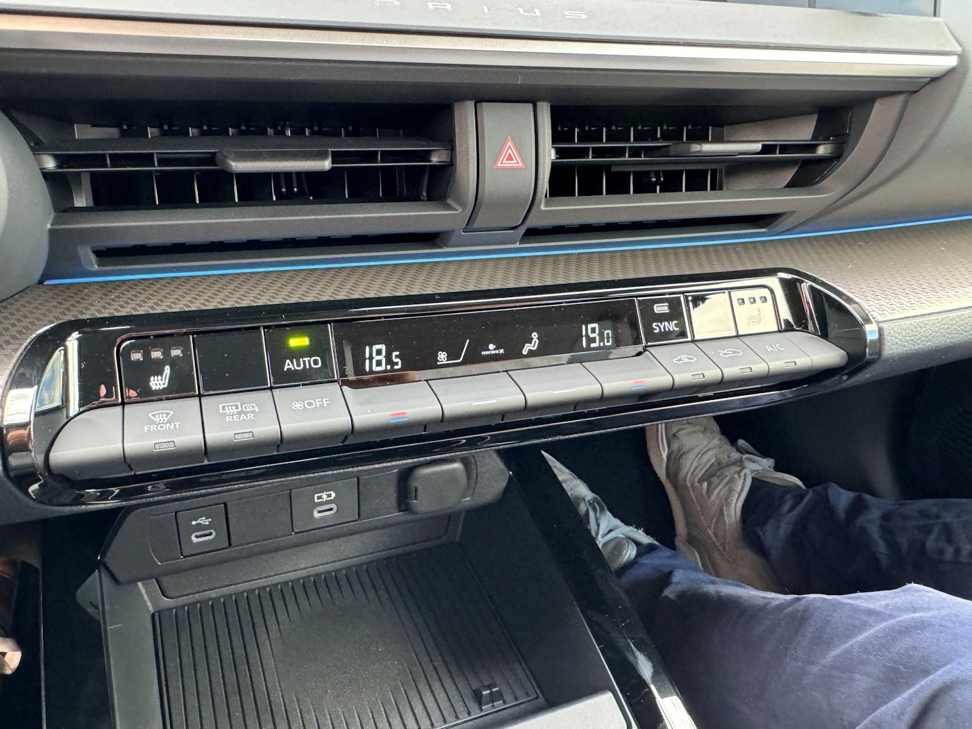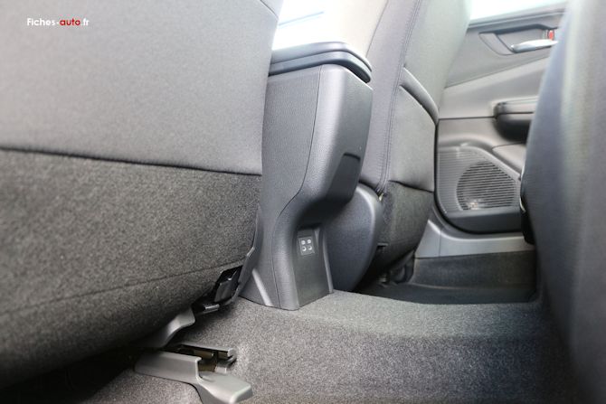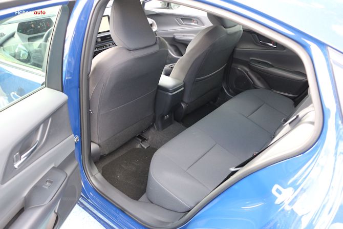 Concernant l'habitabilité au deuxième rang il faudra éviter d'être trop grand en raison de la chute du pavillon associée à une hauteur de toit qui culmine à la base pas très haut (c'est fou comme cette Prius est basse, et il faut se trouver à côté pour se rendre compte à quel point). Pour le reste, largeur de banquette et espace aux jambes, c'est similaire à l'ancienne Prius malgré une très légère supériorité ici en raison de l'empattement un poil plus long.