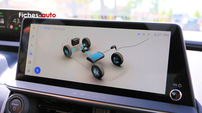 Avec l'application MyT, vous pouvez contrôler à distance la Prius grâce à un smartphone. On peut contrôler la recharge, le verrouillage et déverrouillage des portes, l'allumage ou extinction des feux de détresse pour retrouver votre véhicule et le contrôle de la température intérieure sans démarrer la voiture. Vous pouvez également activer le dégivrage.