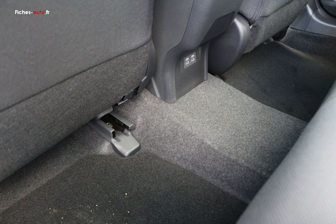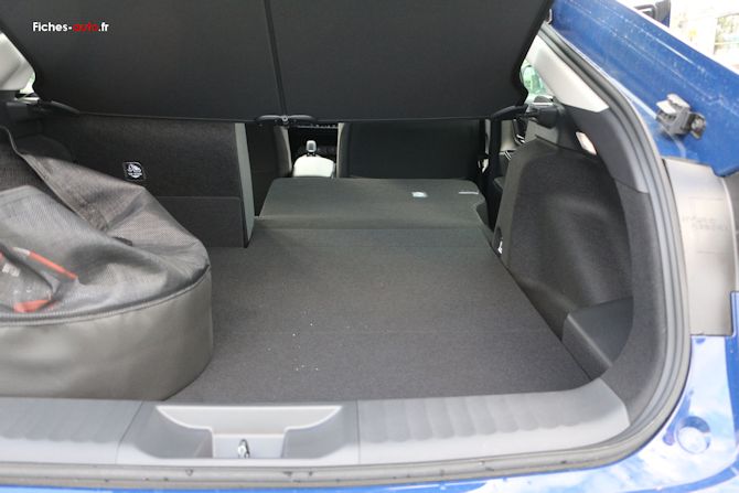 En ce qui concerne la modularité on a un plancher vraiment plat quand on rabat la banquette, banuqette qui se rabat en deux parties.
