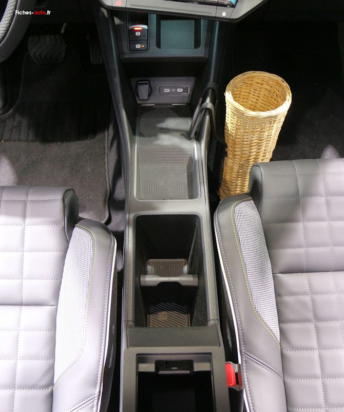 La présentation varie aussi selon les finitions. La version Evolution se montre plus basique, avec une ambiance plus simple et surtout une présence accrue de plastiques durs, notamment sur les contre-portes, la console centrale ou les parties basses du tableau de bord. Les matériaux sont fonctionnels mais peu valorisants, et l'ensemble manque un peu de relief visuel. À partir de la finition Techno, l'ambiance monte clairement en gamme. On gagne en variété de matériaux, avec des inserts textiles plus travaillés (type tissu ou motifs spécifiques), des selleries plus valorisantes et quelques touches décoratives qui donnent un peu plus de cachet à l'ensemble. La version Iconic va encore plus loin avec des habillages plus soignés, des surpiqûres et une présentation plus flatteuse. Cela reste toutefois une montée en gamme progressive : même sur les versions hautes, les plastiques durs restent bien présents sur les zones secondaires, ce qui rappelle qu'on n'est pas sur un positionnement premium.