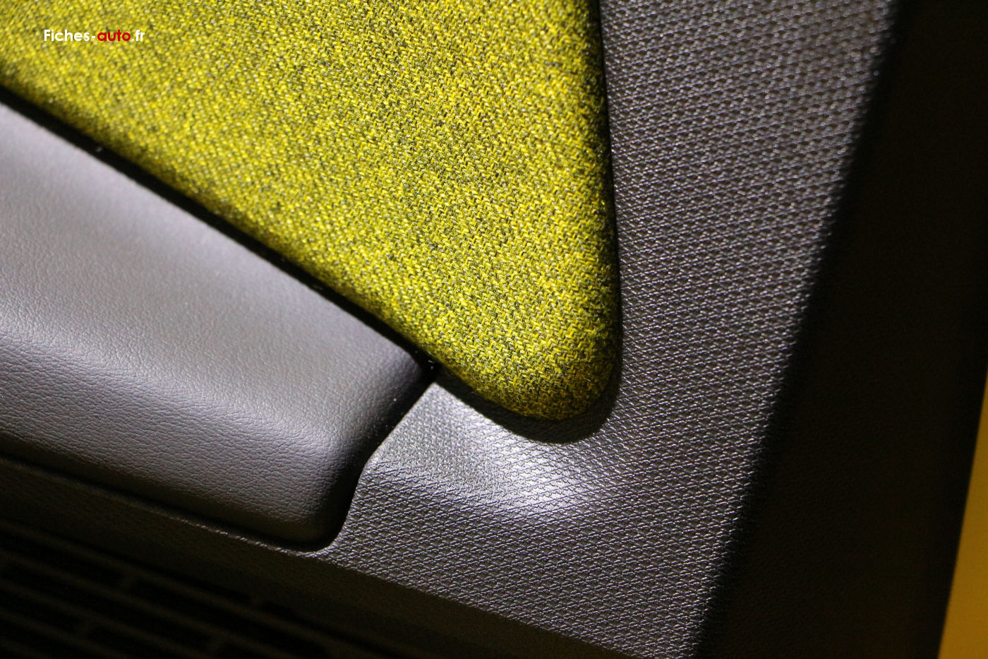 Qu'on se le dise, la R5 est construite avec un bon niveau de rigueur. Le sentiment de qualité est bel et bien là et il surpasse même celui de la Mini de même génération. Il n'y a ici aucune grosse faute qui vient atténuer ce sentiment, et c'est aussi le côté très homogène qui vient flatter l'oeil, car parfois on a des autos qui font de gros efforts sur des parties et qui en négligent d'autres. Ici on a l'impression qu'on ne s'est pas fichu de nous, avec une attention portée même sur les parties les moins visibles. Que ce soit la planche de bord, le volant, les boutons, les parties basses ou les cuirs et tissus de siège, tout est carré et bien réalisé. Pour le segment on peut dire qu'elle est exemplaire ! Même l'encadrement des écran est bien réalisé, avec un effet métallique bien qu'il s'agisse de plastique galvanisé.