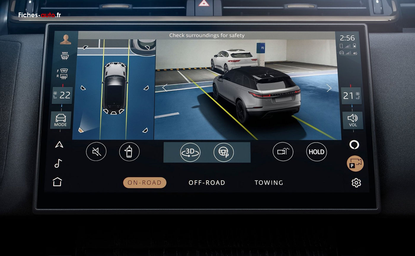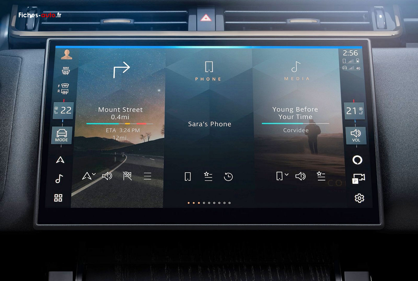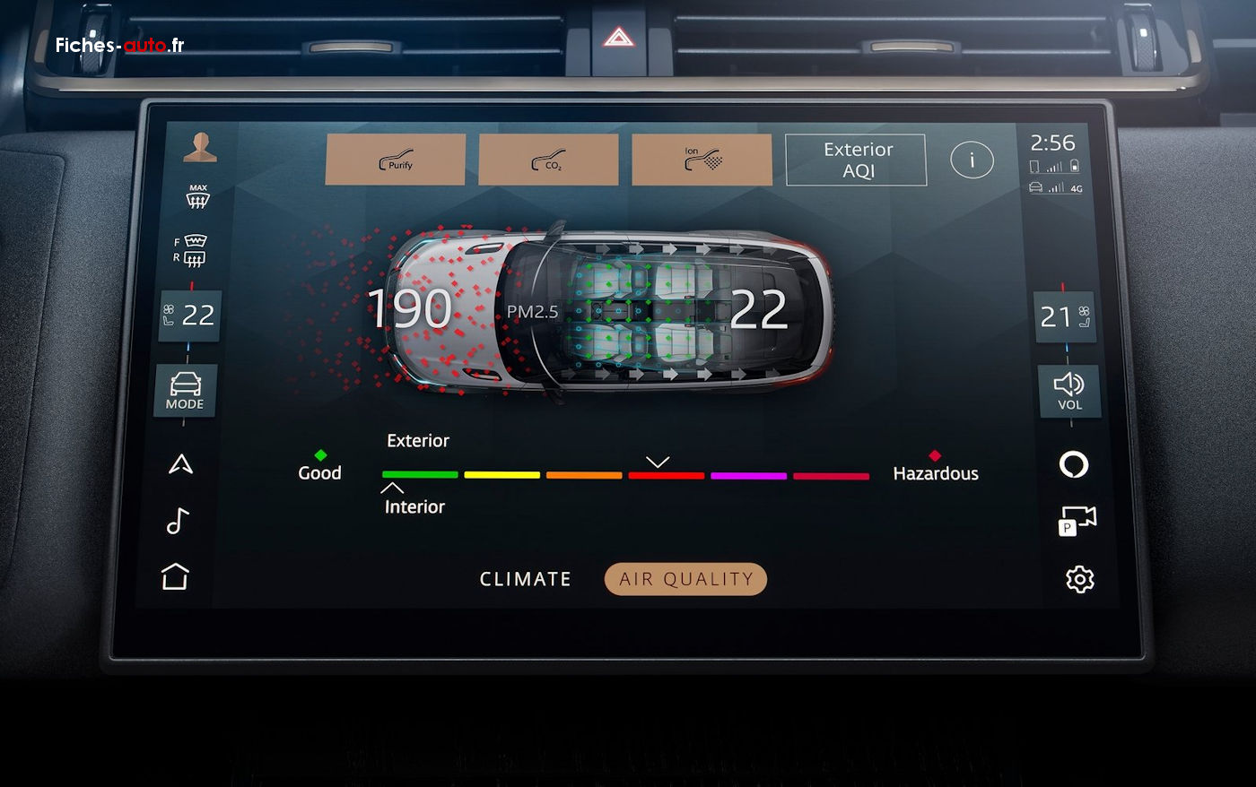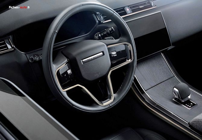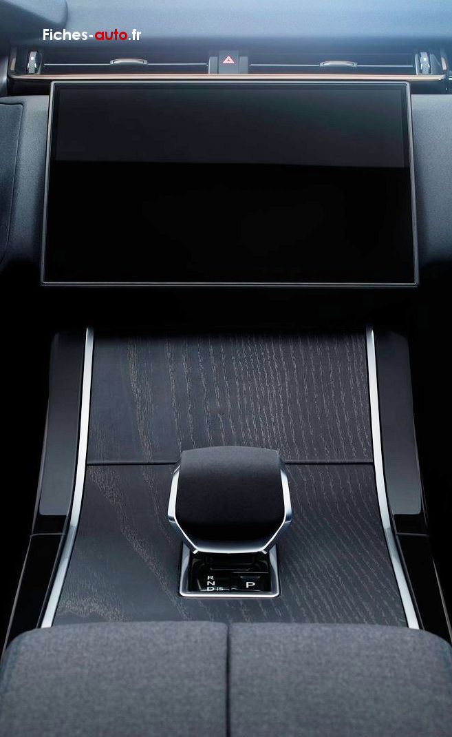 L'intérieur du Land Rover Velar présente plusieurs mises à jour, avec une épuration générale de la planche de bord (quitte à faire un peu désuet) et un écran tactile de 11,4 pouces associé au système d'infodivertissement Pivi Pro. La décision d'utiliser des matériaux non-cuir pour la sellerie, comme la laine et le polyuréthane, témoigne d'une orientation marketing vers le respect de l'environnement, bien que certains pourraient trouver cette transition surprenante ou moins luxueuse.