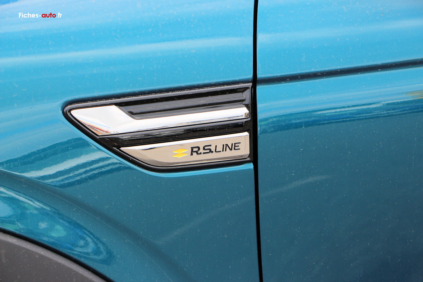 A partir de 35 000 euros : Easy Park Assist (parking mains-libres) // Détection d’obstacle latérale // Sièges avant chauffants // Bouclier avant spécifique avec lame aérodynamique // Badge spécifique R.S. line sur l’enjoliveur d’aile // Ceinture de caisse noir brillant // Jantes alliage 18” R.S. line Silverstone, métalliques foncées et diamantées noires avec accent rouge // Poignées de porte ton caisse, protection inférieure des portes métallique foncé et noir brillant // Rétroviseurs extérieurs noir brillant // Skis avant et arrière métallique foncé avec double sortie d’échappement // Animation R.S. line rouge sur le volant et la planche de bord, surpiqûres rouges sur les panneaux de porte, les sièges et l’accoudoir central // Bandeau décor spécifique aspect carbone sur les panneaux de porte et planche de bord // Ciel de toit noir // Levier de vitesse de type e-shifter avec gravage E-TECH sur l’embase (hybride uniquement) // Pédalier aluminium // Pommeau de levier de vitesse en cuir(1) avec surpiqûres (essence uniquement) // Sièges spécifiques R.S. line cuir(1) - suédine // Volant sport en cuir(1) perforé avec surpiqûres et logo Renault Sport