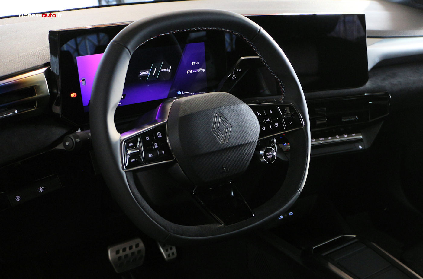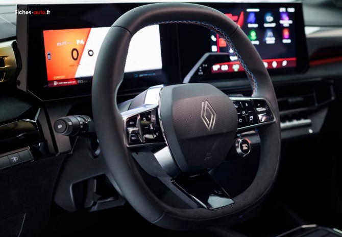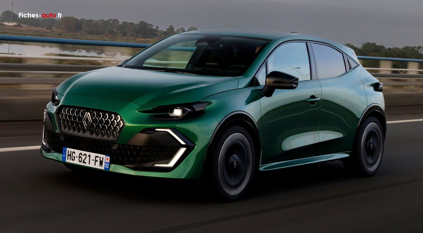(Source Renault Mars 2026) (A partir de 19 900 euros) Sellerie textile gris chiné embossé partiellement recyclé avec surpiqûres turquoise // Roues tôle 16 pouces avec enjoliveurs Synchro // Rétroviseurs extérieurs noir brillant // Antenne requin // Rétroviseurs extérieurs à commande électrique, dégivrants et rabattables manuellement // Volant textile enduit grainé // Compteur numérique 7 pouces // openR link 10,1 pouces : système multimédia avec radio intégrée et 4 haut-parleurs // Réplication smartphone sans fil // Maintenance connectée incluse pendant 8 ans // Mise à jour système à distance (FOTA) incluse pendant 5 ans // Pack connectivité standard via l'application My Renault // Pack connectivité avancée // Appel d'urgence // Lève-vitres électriques // Siège passager avant + 2 sièges arrière avec fixations Isofix // Climatisation manuelle // Lunette arrière chauffante // Eclairage plafonnier // Sièges avant réglables en profondeur et inclinaison // Rétroviseur intérieur jour/nuit manuel // 3 appuie-têtes arrière réglables en hauteur // Aide au parking arrière // Régulateur de vitesse adaptatif // Safety coach & safety score // Répétiteurs de clignotants latéraux // Détection avec correction de trajectoire d'urgence // Feux de jour à LED // Système de surveillance de pression des pneus // Freinage automatique d'urgence (AEBS) // Assistance au démarrage en côte // My Safety Switch // Airbags frontaux conducteur et passager // Avertisseur de distances de sécurité // Frein de parking électrique avec Auto Hold // Assistance au freinage d'urgence // Kit anti-crevaison // Alerte de non-bouclage de ceinture // Alerte de vigilance conducteur avec détection de fatigue // Reconnaissance des limitations de vitesse avec alerte survitesse // Airbags latéraux bassin/thorax conducteur et passager avant
