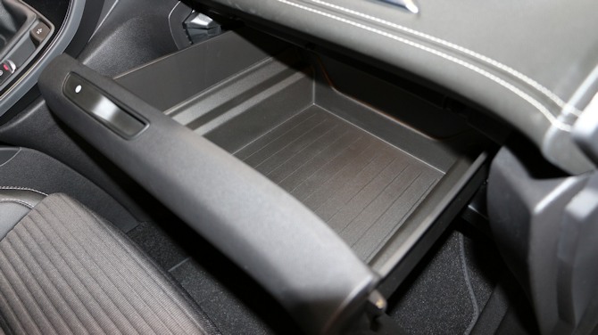 Niveau rangements on sent que Renault a bien mis en avant cette caractéristique dans le cahier des charges. En effet, pas moins de 63 litres se baladent dans l'habitacle. Il y en a devant les sièges avant arrière (plancher) ce qui permet à tous les passagers d'avoir son propre petit espace. Pour le reste on trouve une boîte à gant géante animée par un tiroir coulissant, plutôt grande mais pas très valorisante (ça fait un peu toc ..) comme on le voit sur le Captur.