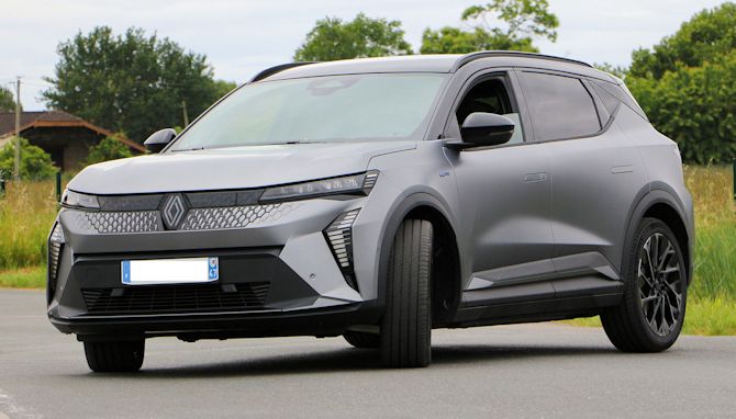 Bref, on a ici affaire à une auto relativement vive même si l'empattement limite cet aspect, en tout cas le Scenic est plus stable de l'arrière que la Mégane E-Tech qui a tendance à voir son arrière train vouloir se dérober tout en pompant beaucoup dès que le relief s'invite sur la route. Et si le Scenic est forcément moins agile avec ses 10 cm d'empattement en plus, il est plus serein à conduire même à rythme élevé.