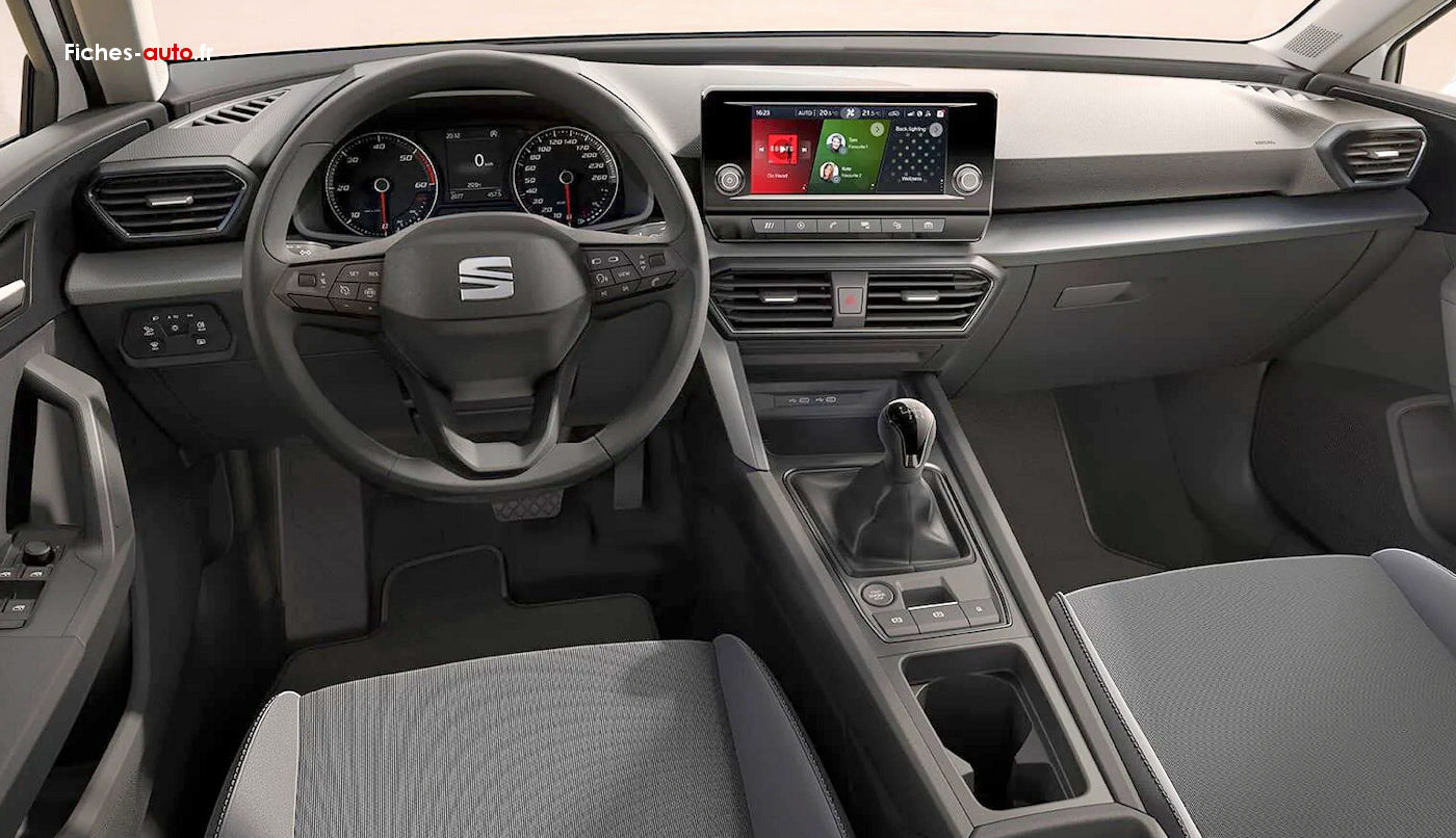 (Source Seat Septembre 2021) A partir de 26 560 euros : Front Assist avec détection des piétons et des cyclistes // Lane Assist et détecteur de fatigue // Siège conducteur réglable en hauteur // Banquette arrière rabattable 2/3 - 1/3 // Sellerie en tissu // Rétroviseurs extérieurs électriques et chauffants // Projecteurs EcoLED // Projecteurs antibrouillard à LED // Kit anti-crevaison // Jantes alliage 16" Climatronic 1 zone // Vitres avant et arrière électriques // 2 Prises USB C à l'avant // Spots de lecture à l'avant // Pare-soleil avec porte ticket côté conducteur // Crochets d'arrimage dans le coffre // Volant cuir multifonction // Écran tactile 8,25" avec radio 4 haut-parleurs // SEAT CONNECT // Radionumérique DAB // Bluetooth // Ordinateur de bord 3,5" avec affichage de la température extérieure // Régulateur / Limiteur de vitesse