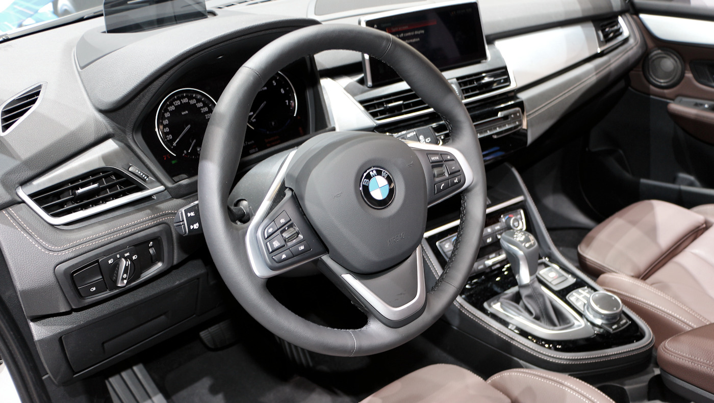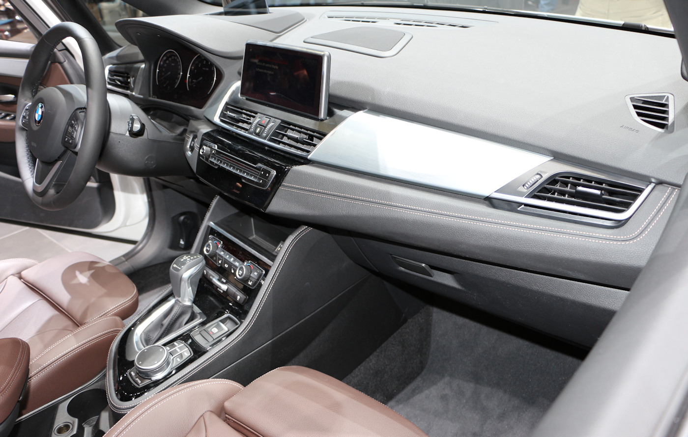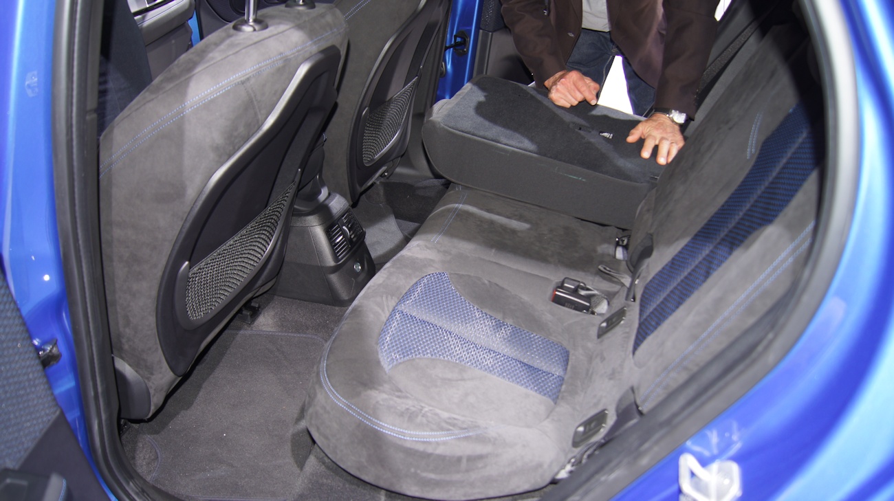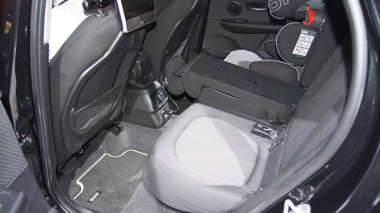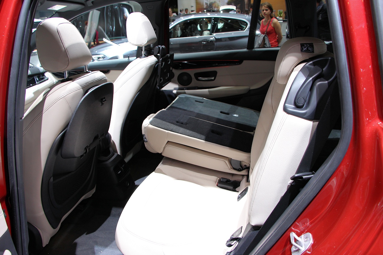 Comme toute Allemande qui se respecte, et même si il s'agit ici d'un monospace, le Série 2 Active Tourer se révèle moins pratique que la concurrence. Tout d'abord les espaces de rangements sont moins nombreux et plus petits (le design intérieur semble favorisé, car de gros bacs deviendraient assez disgracieux visuellement) et la banquette arrière propose une place centrale qui ne rime pas avec bourgeoisie (tunnel de transmission et espace réduit, sans compter l'accoudoir intégré. Et puis les tablettes aviation ne sont pas disponibles dès le premier niveau de finition, tout comme la banquette coulissante sur 13 cm qui apparait sur la finition Lounge (certes on peu considérer la Lounge comme le premier niveau puisque la Premiere n'est disponible qu'avec la 216d, ne soyons donc pas trop critique !). Notez aussi que la banquette est coulissante en deux parties, ce qui permet tout de même une modularité intéressante, sachant aussi que le plancher est quasi plat quand les sièges sont rabattus.