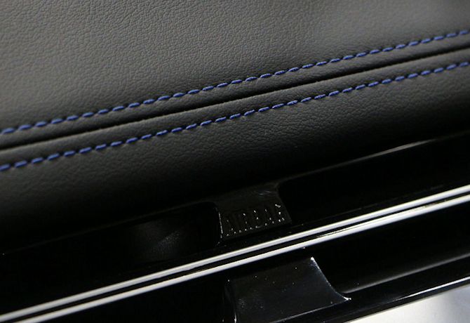 Cet intérieur bénéficie d'une disposition qui est de plus en plus à la mode avec une espèce d'accoudoir flottant qu'on peut qualifier d'aérien. Mais si cela est bien pour pouvoir poser son coude confortablement sans avoir à se pencher, car suffisamment haut, on se retrouve hélas avec des rangements qui manquent de confidentialité pour ce que l'on y case. La partie inférieure se voit de tous et son accessibilité reste assez précaire. Quant à la recharge par induction, et si elle est plutôt bien placée (avec la possibilité de bien voir ce qu'il y a sur le téléphone), elle est trop verticale et induit donc un dispositif qui va le tenir tout en empiétant sur l'écran ...