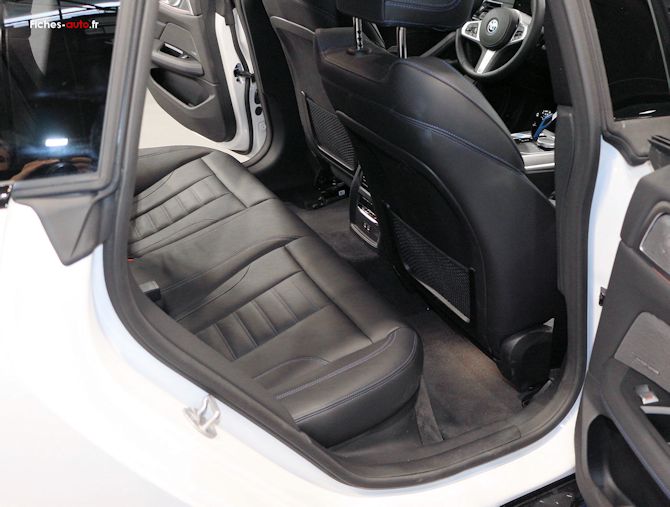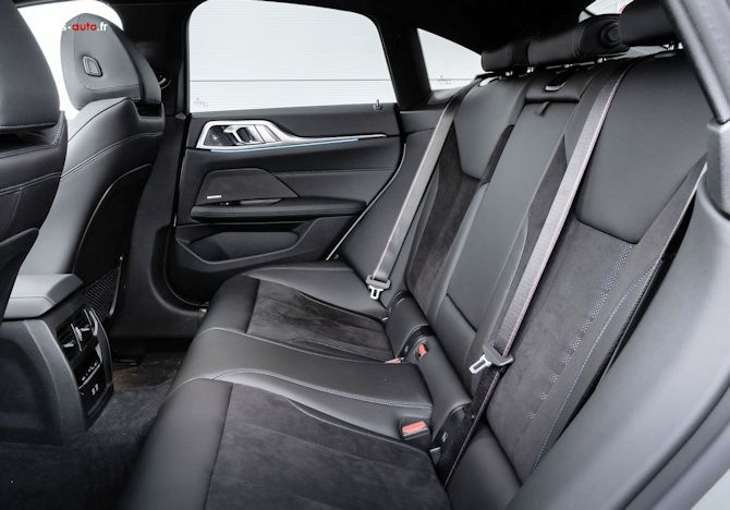 On appréciera toutefois la bonne position d'assise à l'arrière même si on a connu des assises plus inclinées sur les BMW ... De plus, le plancher est un peu haut et faite remonter un peu trop les genoux (la banquette aurait été abaissée pour compenser la toit fuyant du "coupé" et donc plus bas ?). Sur long trajet ça peut finir par fatiguer.