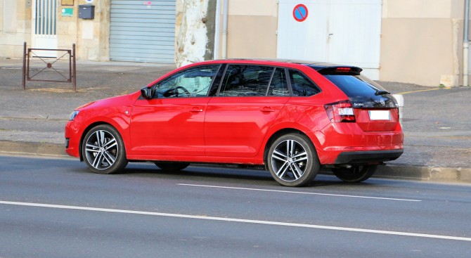 Coffre : 415 litres. Il s'agit ici d'une version réduite de la Rapid puisque la longueur est réduite de 18 cm (passant alors de 4.48 m à 4.30 m) et le coffre passe de 550 à 415 litres. esthétiquement c'est peut-être un peu moins bien mais il faut noter que pour rattraper cela en partie il est possible d'avoir une version bicolore, dont le hayon et le toit sont en noir.