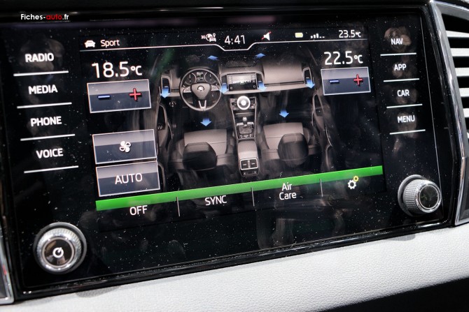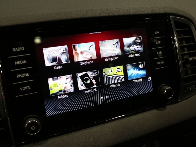 (Source Skoda Octobre 2018) A partir de 25 590 euros : 2 spots de lecture (conducteur et passager) + 1 lumière à l'arrière // Pack visibilité (allumage automatique des phares, détecteur de pluie, rétroviseur intérieur électrochromatique) // 3 appuie-tête à l'arrière // Petit pack cuir (volant, levier de vitesse et fourreau de frein à main en cuir) // 7 airbags + airbag passager déconnectable // Phares avant antibrouillard // 8 haut-parleurs // Phares avant halogènes // Accoudoir central arrière avec porte-gobelets // Radars de stationnement arrière // Accoudoir central avant // Rampes de pavillon noires // Aide au démarrage en côte (HHC) // Range-parapluie sous le siège passager avant (incluant un parapluie) // Banquette arrière 60/40, rabattable // Régulateur de vitesse (incluant la fonction limiteur de vitesse) // Climatisation à régulation automatique bi-zone "Climatronic©" // Rétroviseurs et poignées de porte couleur carrosserie // Contrôle de la pression des pneus // Rétroviseurs extérieurs électriques dégivrants électrochromatiques rabattables avec éclairage du sol // Détecteur de fatigue // Sellerie Tissu Ambition // ESC incluant (incl. ABS+MSR+ASR+EDS+HBA+DSR+RBS+MKB)(1) // Sièges avant réglables en hauteur // Essuie-glace arrière // Supports lombaires à réglage manuel pour les sièges avant // Feux de jour à LED // Système ''Coming Home'' et ''Leaving Home'' (temporisation de l'éclairage extérieur) // Fixations ''ISOFIX®'' aux places arrière pour sièges enfant // Système de navigation AMUNDSEN 8" couleur tactile avec cartographie Europe de l'Ouest. SD, USB, AUX in, Bluetooth, // Frein à main électrique avec fonction autoholdWLAN hotspot. Affichage 2,5D. Smartlink+ (Mirrorlink®, Android Auto®, Carplay®, Smartgate) // Front assistant (aide au freinage d'urgence) // Système téléphone mobile Bluetooth© // Infotainment Online 1 an + Care Connect 1 an // Tapis textile avant et arrière // Interface multimedia USB, Apple connectivity // Vitres avant et arrière électriques // Jantes alliage 17'' ''Ratikon'' (sauf sur motorisation 1.0 TSI 116 BVM6: Jantes 16'' Castor) // Vitres et lunette arrière surteintées // Kessy FULL : système d'autorisation d'accès, de démarrage et d'arrêt du moteur main-libre // Volant cuir 3 branches Multifonctions réglable en hauteur et en profondeur
