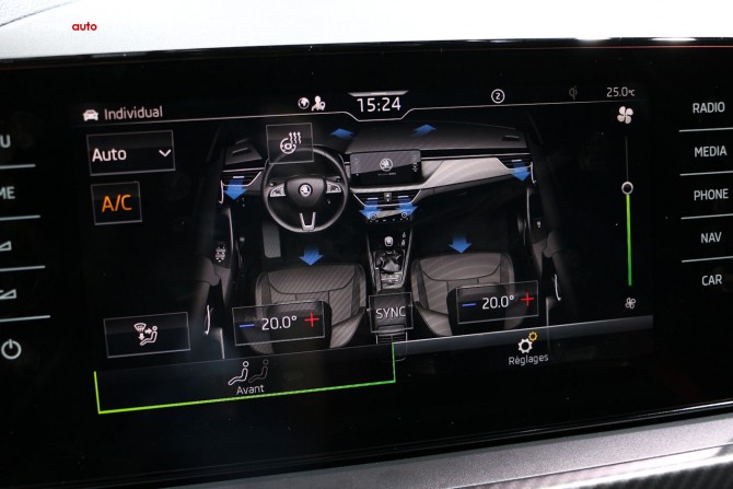 - Absence à l'écran de témoin feux croisement. Ce dernier est situé sous la planche de bord et il faut quitter la route des yeux pour le visualiser. Je le mets en mode auto mais néanmoins j'aimerais le voir à hauteur des cadrans. Je précise que j'ai un tableau de bord analogique et pas le virtual cockpit.- Siège passager non réglable en hauteur alors qu'il l'est sur la Fabia de ma compagne qui a plus de 10 ans et qui a la même finition Ambition. Une mesquinerie !- pas de plancher plat sur ma finition.- Caméra arrière de piètre qualité. Sa présence est incontestablement un plus mais la définition n'est pas ce qui se fait de mieux.- Ergonomie régulateur/limiteur de vitesse à revoir. Usage fastidieux surtout au debut. Hors de vue. L'emplacement de ces commandes sur le volant serait bien plus pratique.- Bruits tableau de bord sur mauvaises routes. Déjà sur la Fabia. Vraisemblablement des ajustements approximatifs. (1.0 TSI 110 ch - 2021 - Dsg7 - finition Ambition - 47000 kms - jantes alu 16")