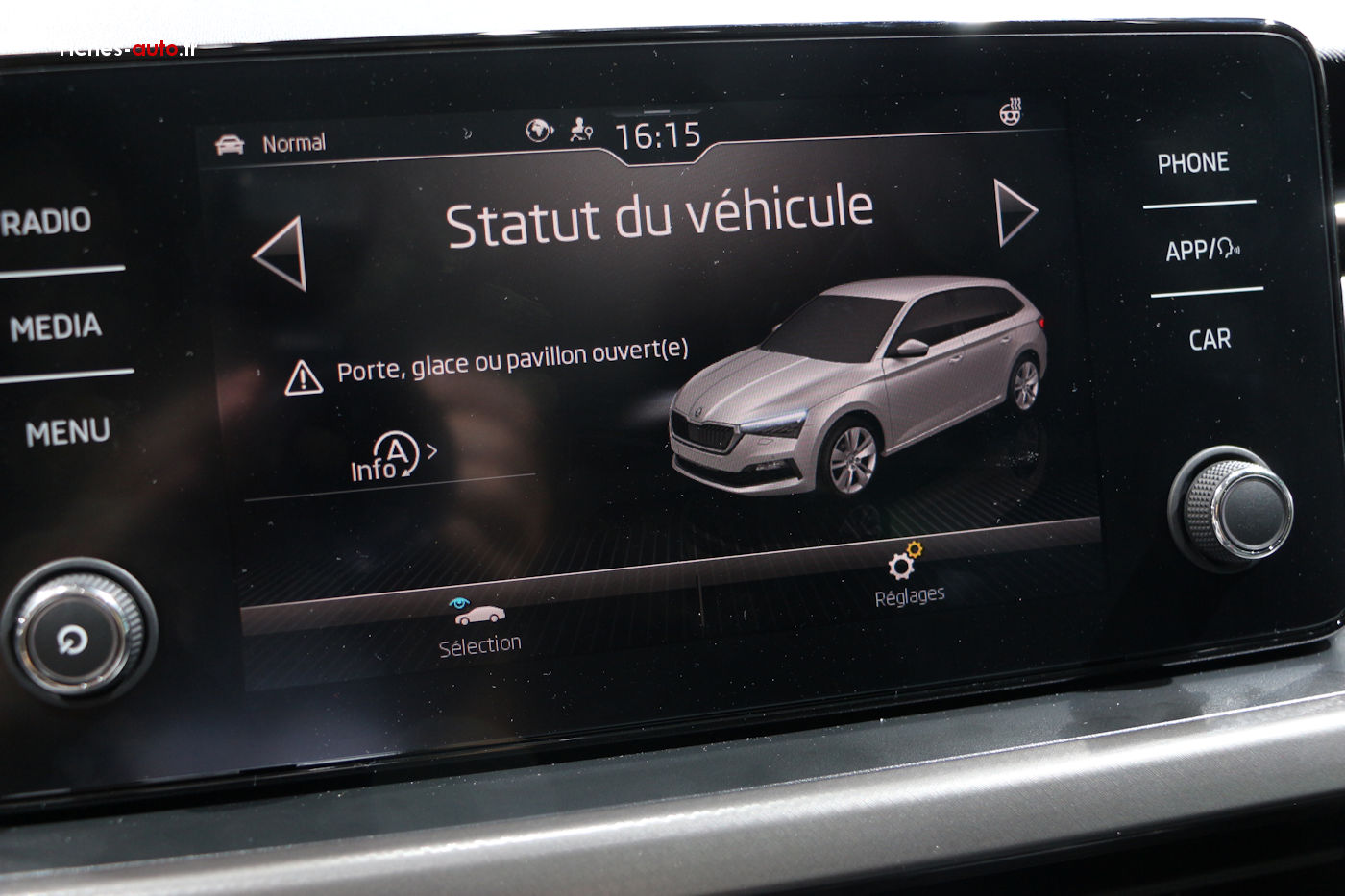 Roue de secours présente (à minima galette) qui n’empiète pas beaucoup sur le vol du coffre malgré la présence du caisson de basses (option Skoda)Ergonomie (mais manque 1 touche ds la commande physique de la clim. celle de l’air conditionnée. obligé d’entrer dans le menu...et quitter la route des yeux)Position de conduiteBon maintien (Sièges sports) Sonorité moteur(à priori car c’est l’ordi qui décide) révision tous les 2 ans ou 30000 km Aides à la conduite pas trop intrusive et très facilement déconnectables (1.5 TSI 150 ch régul adaptatif, bleu racing, boite auto dsg, monte carlo, jante 18, 12/2020, detecteur angle mort, phare/code auto, sound skoda, crochet attelage electrique)