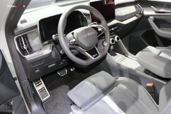 (Source Skoda novembre 2025) À partir de 46 820 € (1.5 TSI) et 51 310 € (2.0 TDI 150 ch) Multimédia : Digital Cockpit 10,25'' personnalisable // Phonebox avec recharge par induction réfrigérée pour deux téléphones // Commandes Skoda Smart Dials