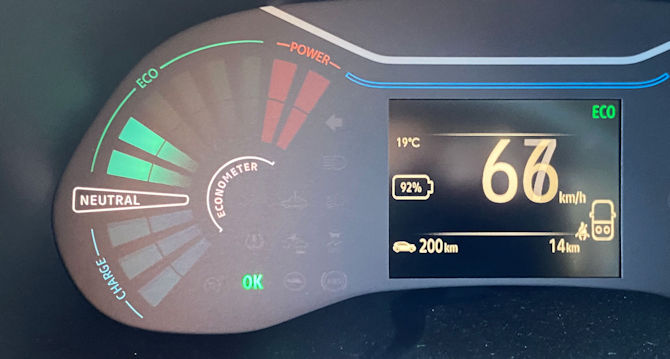 Jauge de la régénération, uniquement en mode éco. Dommage qu'on ne sente que si peu ce frein moteur ...