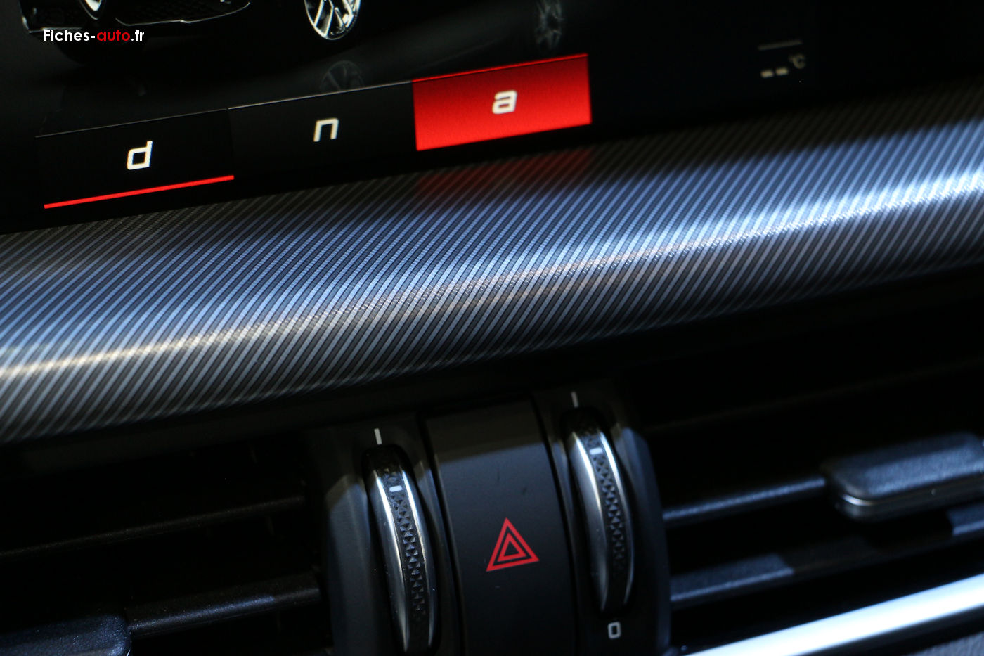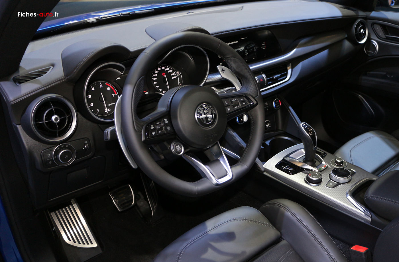 Le Stelvio a profité en 2020, comme la Giulia, d'une mise à niveau importante à l'intérieur. La plus grosse évolution concernant le système d'infodivertissement qui a largement progressé. Les menus s'apparentent désormais un peu à ceux de BMW, et si la qualité d'image reste perfectible l'écran a évolué vers une taille plus généreuse : 8.8 pouces désormais. Il est aussi devenu tactile ce qui permet d'améliorer l'ergonomie. Enfin, le petit écran de 7 pouces au niveau des compteurs permet d'afficher plus de choses, telles les aides à la conduite.