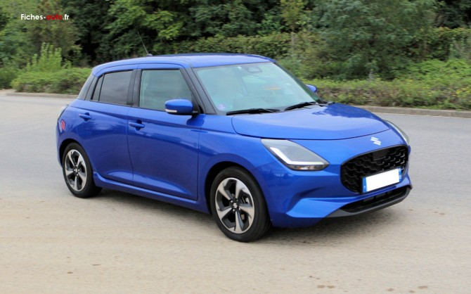A partir de 17 390 euros : Jantes acier 15 pouces // Pneus 175/65 R15 // Feux avant LED // Feux de jour LED // Projecteurs avec réglage manuel de hauteur // Rétroviseurs extérieurs réglables électriquement // Poignées de portes couleur carrosserie // Vitres avant électriques // Essuie-glace avant avec lave-glace // Spoiler arrière // Climatisation manuelle // Combiné d'instrumentation avec écran LCD couleur 4,2 pouces // Volant multifonction réglable en hauteur et profondeur // Système multimédia avec écran tactile 9 pouces // Apple CarPlay sans fil // Android Auto sans fil // Bluetooth // Suzuki Connect // 4 haut-parleurs // Siège conducteur réglable en hauteur // Banquette arrière rabattable 60/40 // Verrouillage centralisé // Démarrage sans clé (bouton Start) // Caméra de recul // Régulateur et limiteur de vitesse // Alerte de franchissement de ligne // Maintien dans la voie // Reconnaissance des panneaux // Aide au freinage d'urgence avec détection piétons et cyclistes // Aide au démarrage en côte // Surveillance de l'attention du conducteur // Feux automatiques // Avertisseur de dépassement de vitesse // Système mild-hybrid 12V // Direction assistée électrique // Kit de réparation de pneus.
