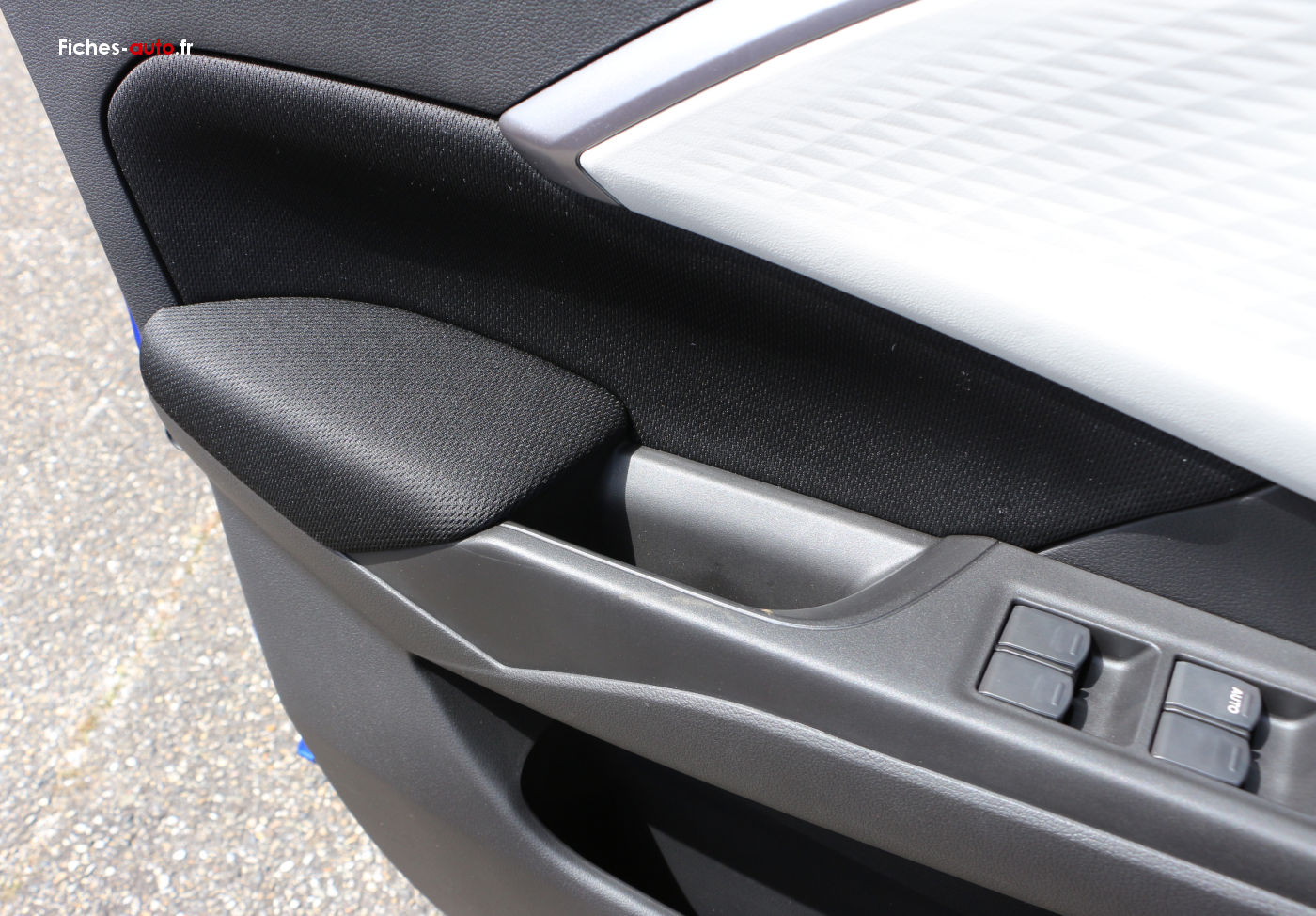 Les matériaux sont majoritairement des plastiques durs. Sur le haut de planche, l'aspect est un peu plus flatteur, mais en descendant vers la console et les bas de portes, on tombe sur des surfaces rigides et sonores au toucher. L'assemblage, en revanche, est plutôt soigné: ça ne craque pas, ça ne bouge pas, même sur revêtement dégradé. On est davantage dans l'esprit utilitaire robuste que dans la recherche de sensation haut de gamme. Quelques inserts imitation alu ou noir laqué viennent casser la monotonie, mais l'ensemble reste discret.