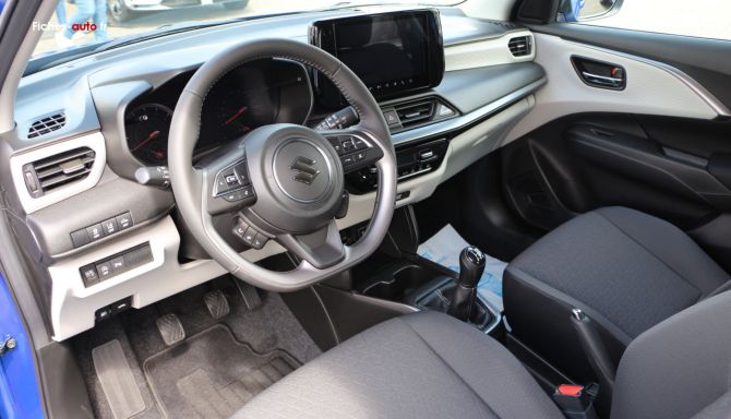 La Swift reste une petite polyvalente au sens strict du terme. À l'avant, on est bien installé, avec une position de conduite naturelle et des réglages suffisants pour s'adapter à la majorité des gabarits. La hauteur sous pavillon permet à un conducteur d'environ 1,85 m de tenir sans se recroqueviller, et l'espace aux épaules reste correct vu la largeur extérieure contenue (environ 1,73 m hors rétros).