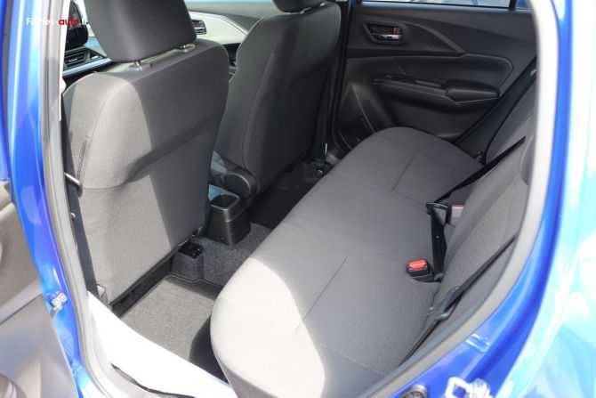 À l'arrière, l'espace aux jambes est assez correct pour une citadine de 3,86 m de long, à condition de ne pas pousser les sièges avant complètement en arrière. Deux adultes voyageront sans vraie gêne, mais la largeur de banquette ne permet clairement pas d'accueillir trois adultes dans de bonnes conditions (celui du milieu aura en plus à se coltiner le tunnel de servitude, qui sert aussi au All Grip). C'est jouable sur quelques kilomètres, pas davantage. Le tunnel central reste discret, mais ce n'est pas lui qui limite, c'est vraiment la largeur disponible.
