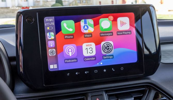 L'infodivertissement est un peu comme le reste, sans chichi. L'écran tactile central de 9 pouces (7 sur l'ancienne) est correctement placé, ni trop bas ni trop loin, ce qui facilite la lecture et la manipulation. Il gère l'audio, la téléphonie, la navigation (selon versions), quelques paramètres véhicule et la connectivité smartphone. Apple CarPlay et Android Auto sont de la partie, généralement en sans fil, ce qui sauve clairement l'expérience au quotidien: une fois le téléphone connecté, on profite d'une interface plus lisible et plus fluide.