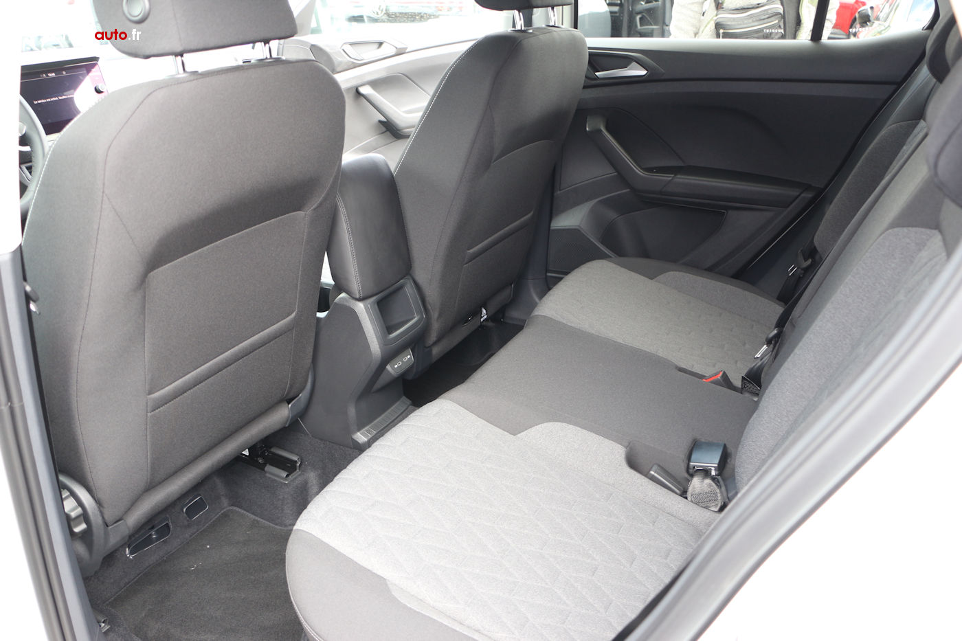 Quand la banquette est reculée au maximum, son positionnement de base, on profite d'un espace aux jambes supérieur que sur l'Arona mais avec un coffre un peu plus petit. On est à 385 litres (VDA sous tablette, donc un peu plus en norme liquide qui prend tout en compte) contre 400 sur l'Arona (certes, 15 litres c'est dur à différencier ..). Quand on avance la banquette (T-Cross), on grimpe jusqu'à 455 litres mais il faut alors éviter d'embarquer des passagers car il n'y a alors plus aucun espace pour leurs jambes. Même des enfants ne passeront pas. Cette manière de faire vaut donc quand le T-Cross circule sans passagers arrière, ou alors il faut reculer de 7 cm maximum.
