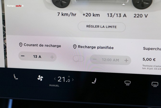 - Capacité de recharge en AC relativement limitée (11 kW maximum, mais dans les faits ça suffit)
