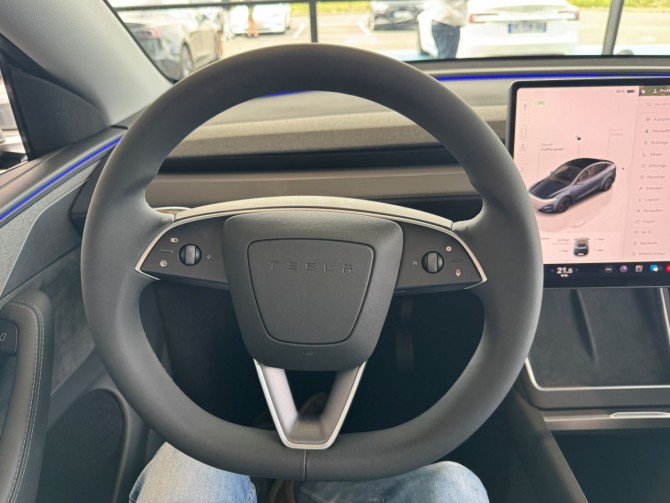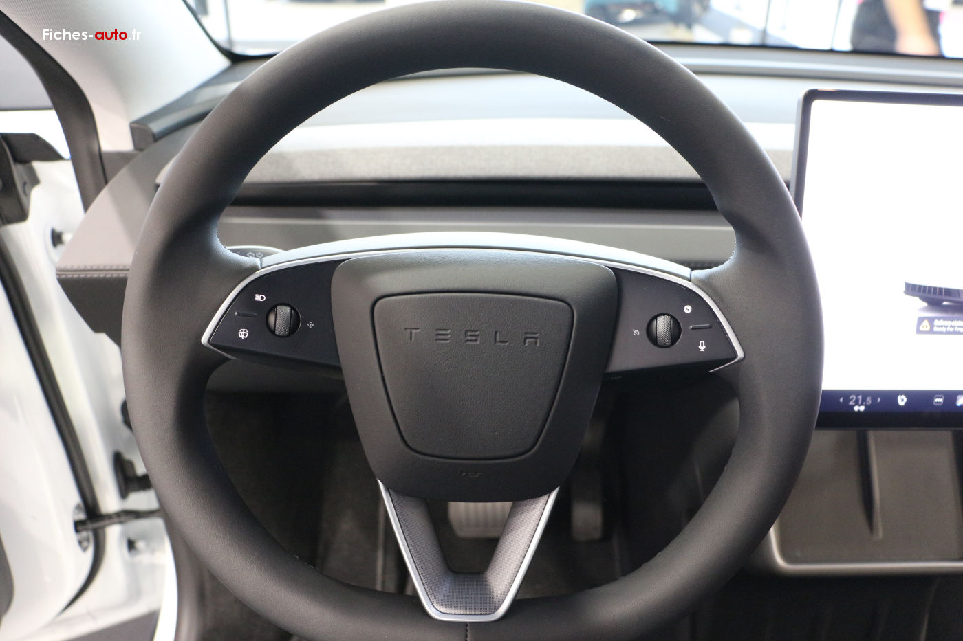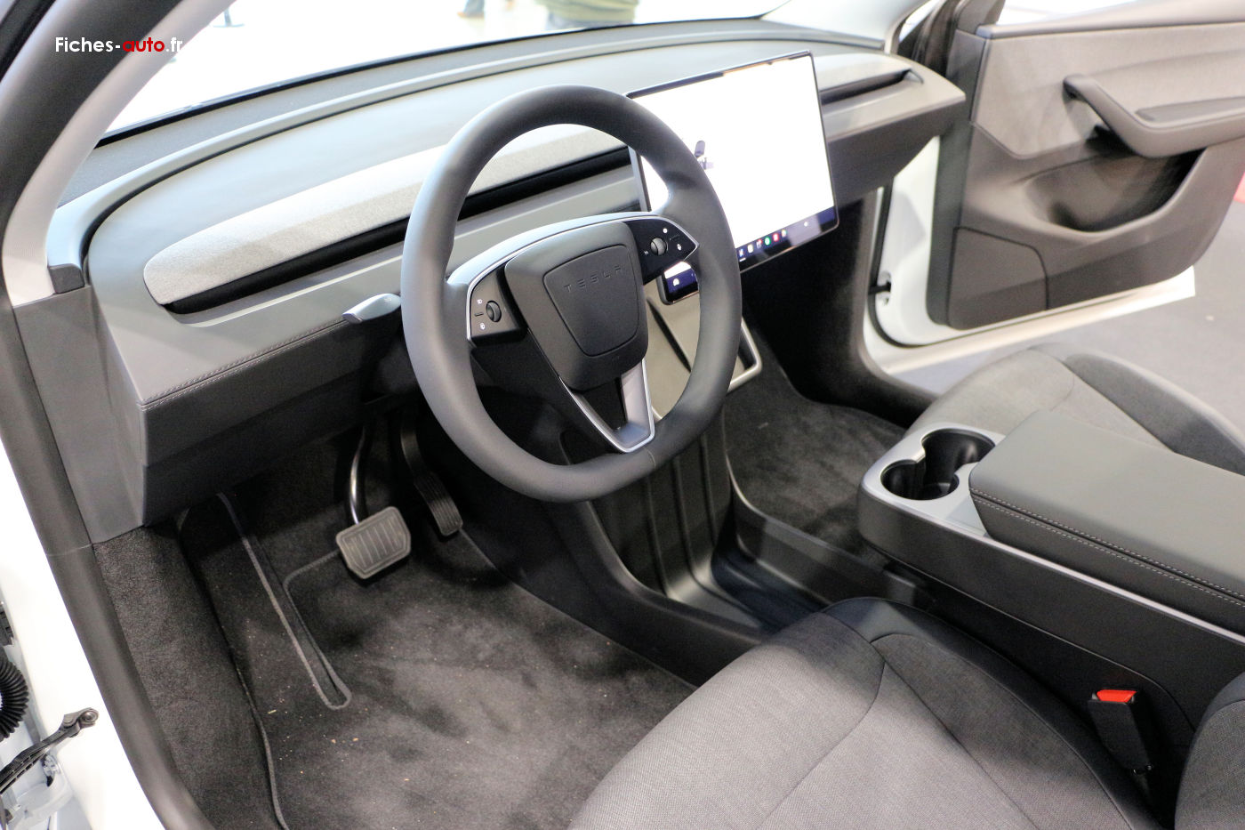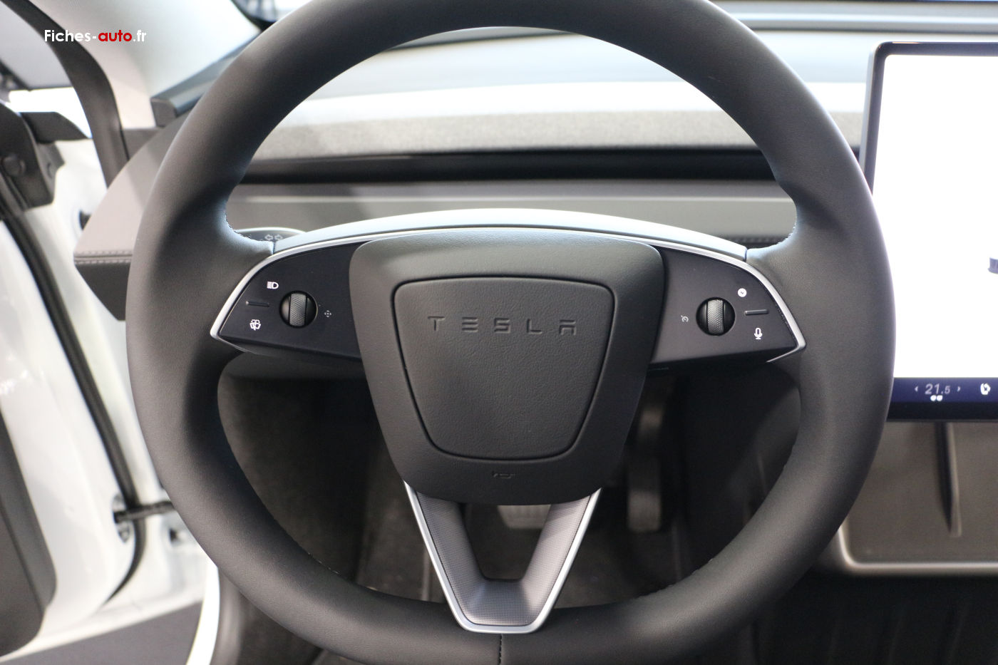 (Ancienne version, plus commercialisée depuis 2025) A partir de 44 990 € : moteur arrière à aimant permanent et réluctance variable // batterie LFP de 60 kWh // propulsion // 455 km d’autonomie WLTP // jantes 19 pouces Gemini // suspension classique dépendante de la fréquence // direction à assistance variable // intérieur noir ou blanc simili cuir // sièges avant chauffants et électriques // banquette arrière rabattable électriquement // écran central 15 pouces avec processeur AMD Ryzen // 13 haut-parleurs + caisson de basse // filtre HEPA // double vitrage acoustique // Autopilot de série // caméra 360° Tesla Vision // toit panoramique fixe // coffre électrique // charge rapide 250 kW DC // climatisation régulée // feux LED automatiques // pas de suspensions pilotées // pas de différentiel actif.