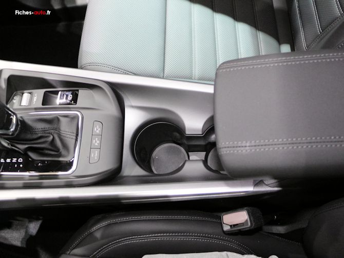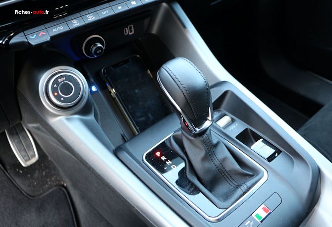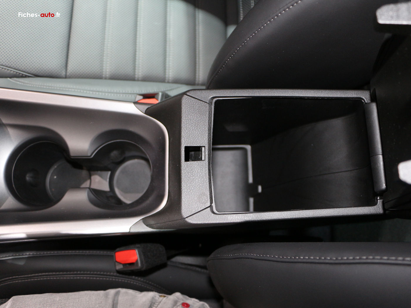 Concernant les rangements on a en bout de console centrale une recharge par induction qui n'est hélas pas occultante (il est bien de pouvoir fermer les rangements pour limiter les risques de vol), elle se révèle toutefois très bien placée car elle permet de voir ce qu'il se passe sur son téléphone (bien que je n'invite pas à l'utiliser en conduisant). Derrière se trouvent deux porte-gobelets ainsi que l'accoudoir dans lequel il y a un peu de place. Si il n'y a rien d'exceptionnel ici, il y en a en revanche suffisamment pour ne pas avoir à trop souffrir (très ennuyeux et lassant de ne pas trouver de logement pour mettre toutes ses petites affaires, et jusqu'il y a peu c'était assez négligé par les constructeurs).