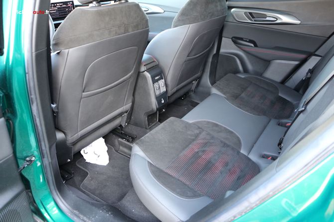 Tout d'abord l'habitabilité au deuxième qui s'avère être assez généreuse et apte pour embarquer des adultes (en aligner trois est toutefois un peu optimiste). On a à la fois un espace très correct aux jambes tout en profitant d'une largeur de banquette pas ridicule non plus. Et si la place arrière centrale est moins confortable, le tunnel de servitude n'est pas trop imposant et la largeur d'assise n'est pas si étroite que ça, c'est donc très praticable tant qu'on ne fait pas mille bornes.