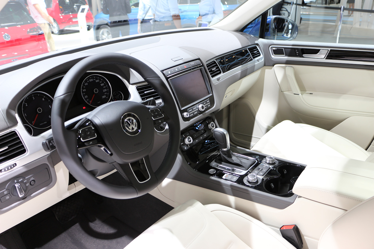 Si Volkswagen se garde bien de jouer dans la cour des "Premium" (car VW est une marque généraliste, on a tendance à l'oublier tellement leurs réalisations sont admirables) pour la grande majorité de ses modèles, le constructeur allemand sait tutoyer l'excellence lorsque cela est utile. Par exemple pour faire un 4X4 de luxe ... Le choix des matériaux (cuir, bois précieux, aluminium...) mais aussi la qualité des finitions ne prêtent pas au débat, c'est très qualitatif et sans grande critique. Cependant, question présentation, si c'est plutôt bien pensé, je n'aime pas trop l'esthétique un peu banale de la planche de bord. Ca manque un peu de peps, de luxe ... Certains me trouveront un peu sévère mais on est en droit d'espérer un peu plus sur ce genre de véhicule.