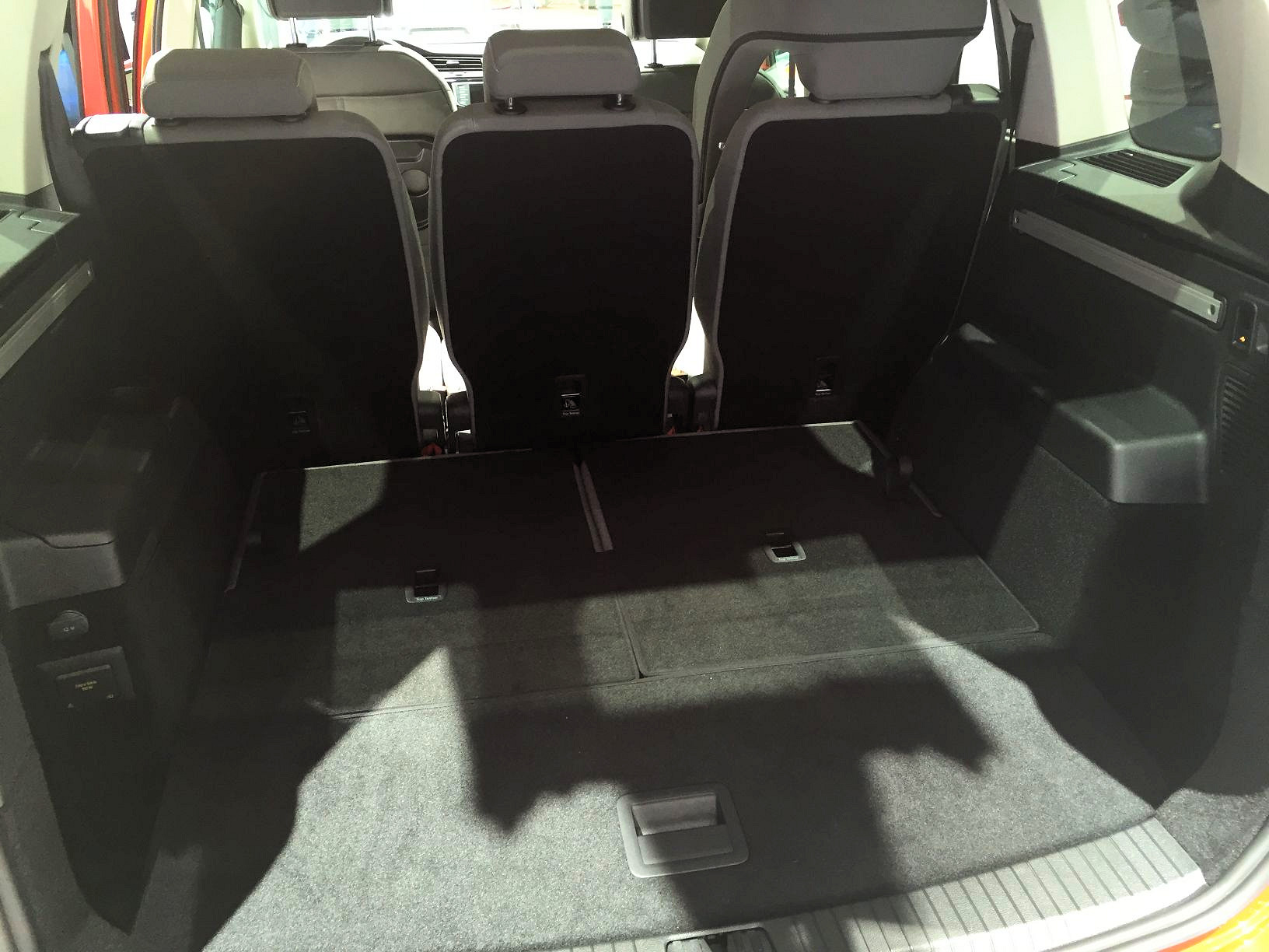 Si l'ancien Touran proposait une modularité dépassée, avec les fameux sièges qu'il fallait enlever pour obtenir un plancher plat, et bien celui-ci se met dans le rang en proposant de rabattre les sièges dans le plancher. Et cerise sur le gâteau, l'espace offert une fois les sièges rabattus est le même que sur le précédent. Généralement c'est inférieur car les sièges prennent quand même de la place, même dans le plancher.
