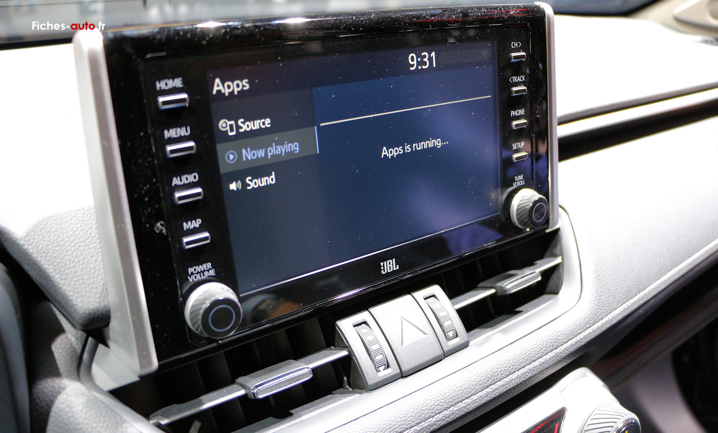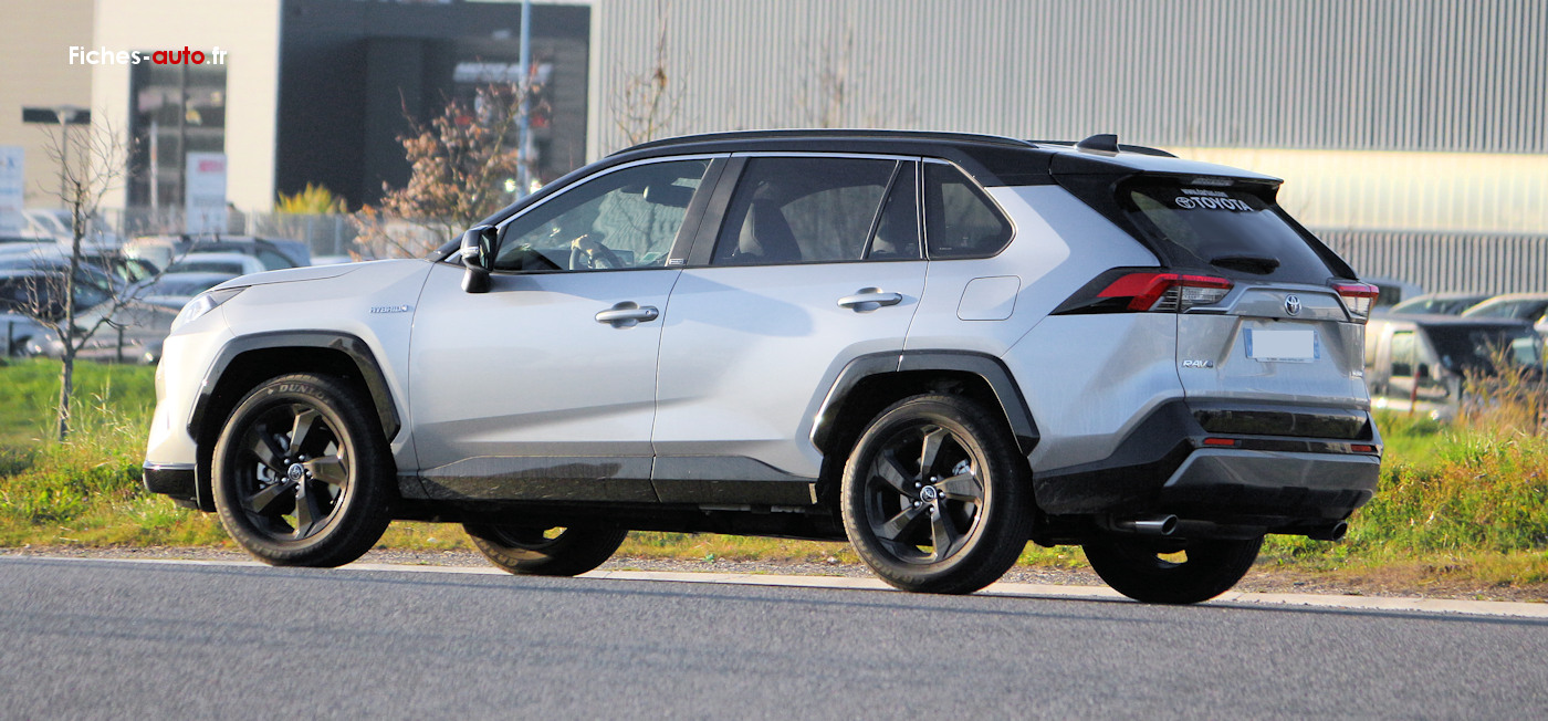 (Source Toyota Juillet 2019) A partir de 33 500 euros : Jantes en alliage 17’’ Sahara. // Rétroviseurs extérieurs électriques, dégivrants, et rabattables automatiquement avec rappels de clignotants // 7 Airbags. // Allumage et ajustement automatique des feux. // Combiné d’instrumentation avec écran couleur TFT multifonction 4,2’’. // Démarrage sans clé. // Indicateur de sous gonflage des pneus. // Limiteur de vitesse. // Roue de secours 17’’ de type galette (165/80) dans le coffre. // Sélection du mode de conduite : ECO, NORMAL, SPORT, EV. // Système d’appel d’urgence automatique “E // Call”. // Système d’assistance au démarrage en côte (HAC). // Système de freinage antiblocage (ABS) + BA + EBD. // Systèmes de contrôle de motricité (TRC) et de stabilité du véhicule et de l’attelage (TSC). // Toyota Safety Sense™ 2 // Accoudoir central avant avec compartiment de rangement. // Banquette arrière rabattable 60/40. // Cache // bagage. // Climatisation à régulation automatique bizone. // Plancher de coffre réversible avec revers imperméable. // Sellerie tissu noir. // Services connectés MyT®. // Système audio avec écran 7’’, ports auxiliaire et USB et 6 haut // parleurs. // Système de fixation Isofix® aux places latérales arrière. // Système intelligent de plancher plat “Toyota Easy Flat System”. // Tapis de sol “RAV4 Hybrid” en velours, avant et arrière. // Vitres électriques avec système anti pincement, descente et remontée à impulsion. // Volant multifonction 3 branches, réglable manuellement en hauteur et en profondeur. // Volant et levier de vitesses gainés cuir.