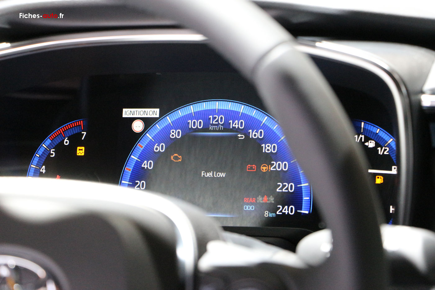 (Source Toyota Décembre 2019) A partir de 26 950 euros : Antenne de toit type requin // Feux de jour et feux arrière à LED // Jantes en acier 15” avec enjoliveurs // Phares à LED // Rétroviseurs et poignées extérieures de porte couleur carrosserie // 7 Airbags // Allumage automatique des phares // Indicateur de perte de pression des pneus // Kit anti-crevaison // Système d’appel d’urgence automatique “E-Call ” // Système d’assistance au démarrage en côte (HAC) // Toyota Safety Sense™ 2 (1) // Accoudoir central avant avec compartiment de rangement // Banquette arrière rabattable 60/40 // Climatisation à régulation automatique bizone // Console centrale noir laqué // Feux avant à extinction différée (Follow-me home) // Frein de stationnement électrique // Ordinateur de bord avec écran couleur TFT 4,2’’ multifonction // Rétroviseurs extérieurs dégivrants à réglage électrique // Sellerie tissu noir // Services connectés MyT®(2) // Siège conducteur réglable en hauteur manuellement // Système audio Toyota “Touch” avec écran couleur tactile 8’’ multifonction, radio digitale (DAB), système de téléphonie Bluetooth®(3), connectique auxiliaire/USB et 6 haut-parleurs // Système de connectivité smartphone Apple CarPlay™ / Android Auto™ // Système de démarrage sans clé “Smart Start” // Vitres avant et arrière électriques // Volant multifonction en cuir réglable manuellement en hauteur et profondeur