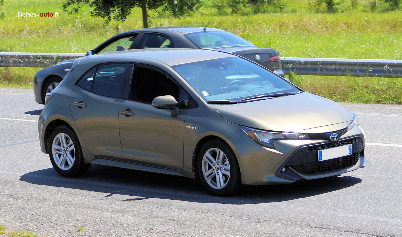 (Source Toyota février 2023) A partir de 27 900 euros : Antenne de toit type requin // Feux de jour et feux arrière à LED // Jantes en acier 16” avec enjoliveurs // Phares avant à LED mono projecteur // Rétroviseurs et poignées de portes extérieures couleur carrosserie // 7 airbags // Ajustement manuel des phares // Allumage automatique des phares // Frein de stationnement électrique // Indicateur de perte de pression des pneus // Indicateur de temps passé en tout électrique // Kit anti crevaison // Système d’appel d’urgence automatique ”e-Call“ // Système d’assistance au démarrage en côte (HAC) // Système d’avertissement acoustique d’approche du véhicule (AVAS) // Système de fixations Isofix® aux places latérales arrière // Toyota Safety SenseTM (1) // Accoudoir central avant avec compartiment de rangement // Banquette arrière rabattable 60/40 // Ciel de toit noir // Caméra de recul // Climatisation automatique bizone // Connectique USB Type C à l’avant et port auxiliaire // Console centrale noir laqué // Lumière de coffre // Ordinateur de bord avec écran couleur TFT 7” multifonction // Planche de bord gainée de cuir synthétique noir // Rétroviseurs extérieurs dégivrants à réglage électrique // Sellerie tissu noir // Services connectés MyT®(1) // Système d’infodivertissement Toyota Smart Connect(2)(3) // Système de démarrage sans clé ”Smart Start“ // Seuils de porte en aluminium ”Corolla“ // Tapis de sol // Verrouillage centralisé // Vitres avant et arrière électriques à impulsion // Volant multifonction réglable manuellement en hauteur et profondeur